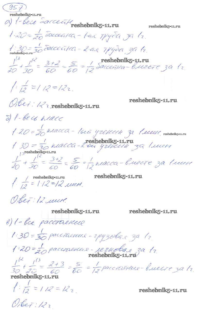 Готовая домашняя работа с ответами по Математике за 5 класс Никольский, Потапов, Решетников, Шевкин Учебник МГУ - школе Просвещение 2016 ФГОС - Упражнения 957