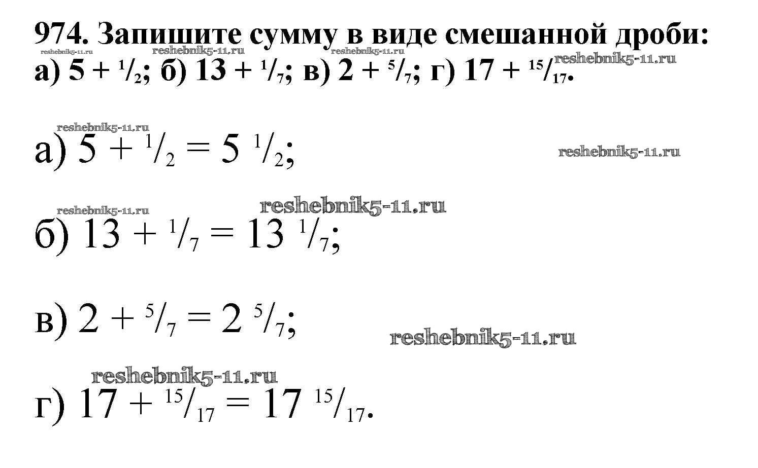 Готовая домашняя работа с ответами по Математике за 5 класс Никольский, Потапов, Решетников, Шевкин Учебник МГУ - школе Просвещение 2016 ФГОС - Упражнения 974