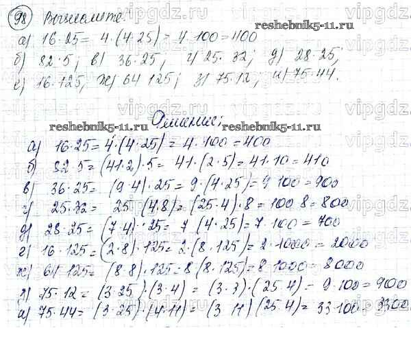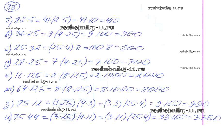 Готовая домашняя работа с ответами по Математике за 5 класс Никольский, Потапов, Решетников, Шевкин Учебник МГУ - школе Просвещение 2016 ФГОС - Упражнения 98