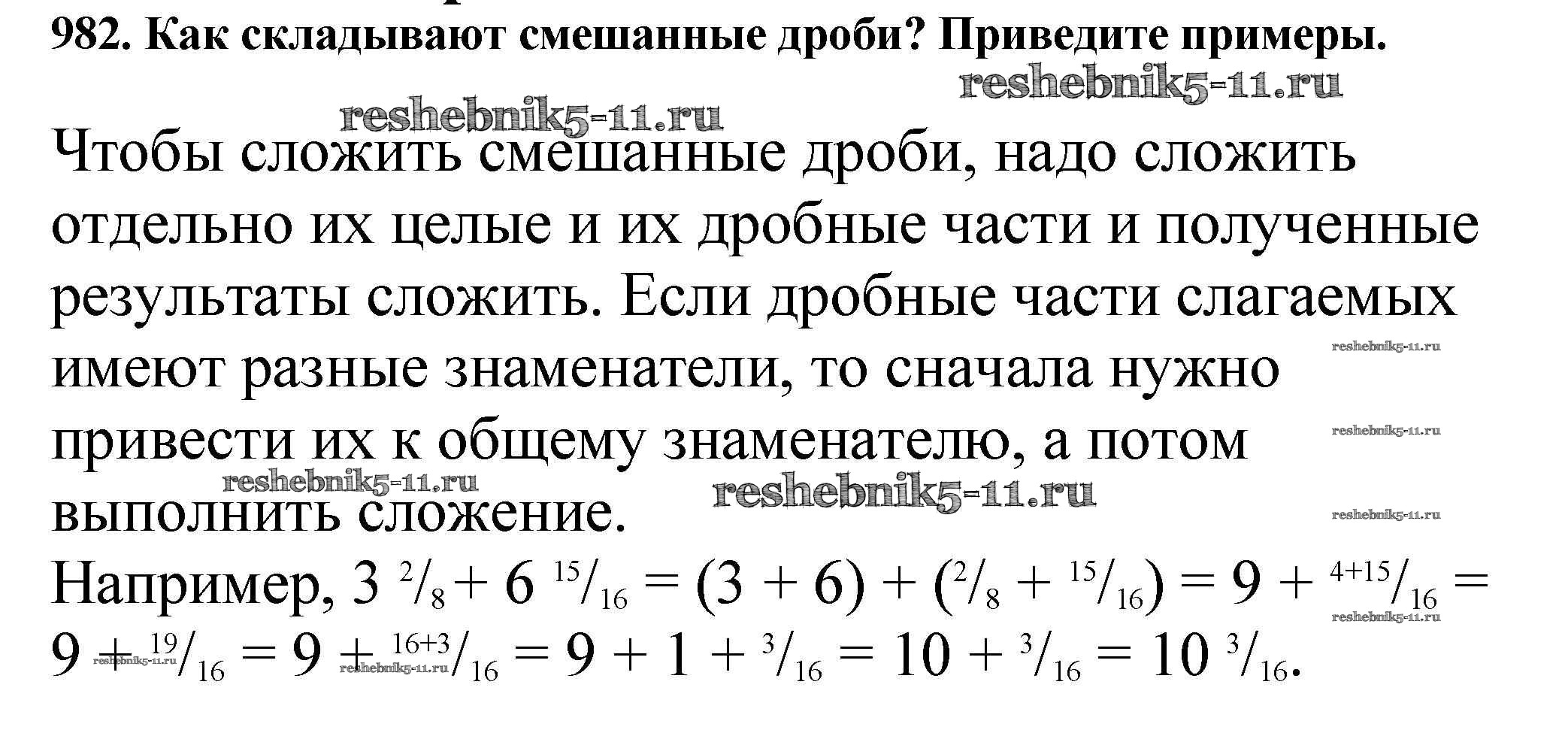 Готовая домашняя работа с ответами по Математике за 5 класс Никольский, Потапов, Решетников, Шевкин Учебник МГУ - школе Просвещение 2016 ФГОС - Упражнения 982