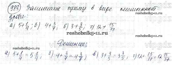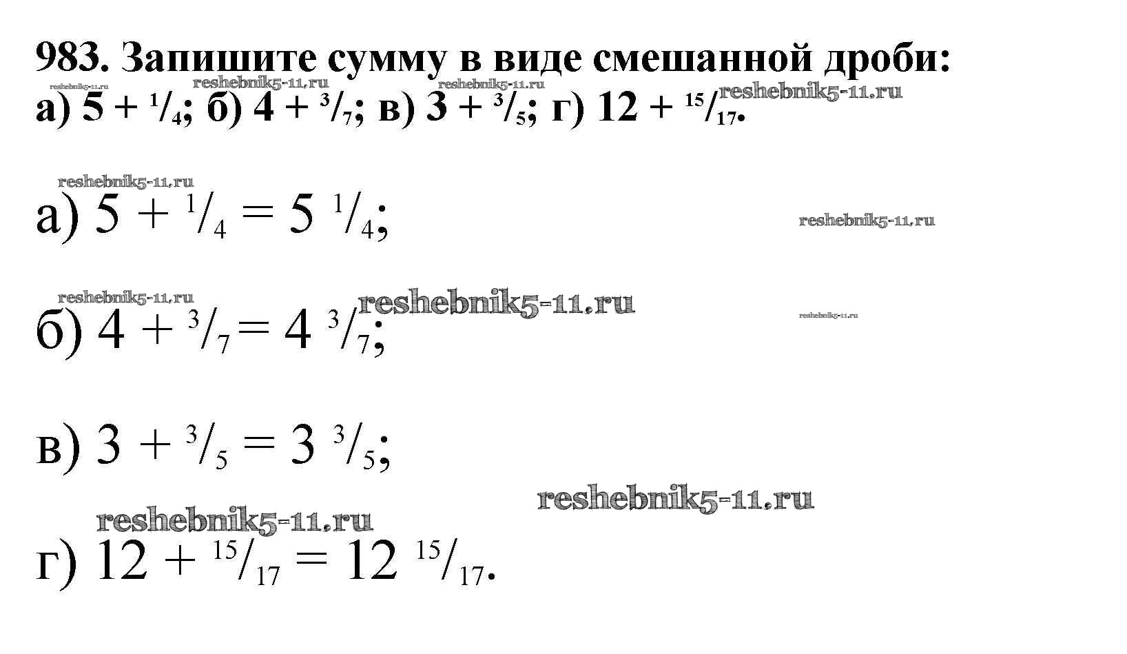 Готовая домашняя работа с ответами по Математике за 5 класс Никольский, Потапов, Решетников, Шевкин Учебник МГУ - школе Просвещение 2016 ФГОС - Упражнения 983