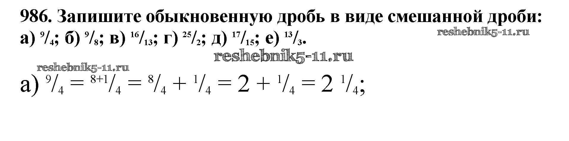 Готовая домашняя работа с ответами по Математике за 5 класс Никольский, Потапов, Решетников, Шевкин Учебник МГУ - школе Просвещение 2016 ФГОС - Упражнения 986