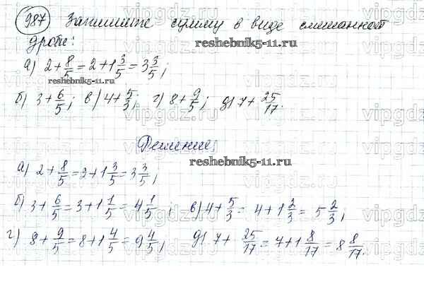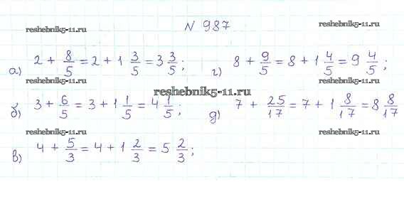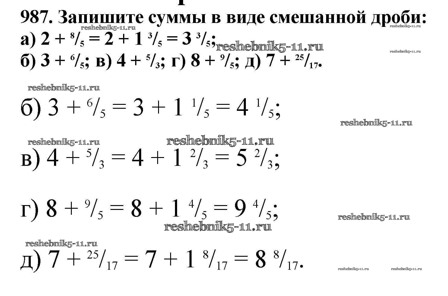 Готовая домашняя работа с ответами по Математике за 5 класс Никольский, Потапов, Решетников, Шевкин Учебник МГУ - школе Просвещение 2016 ФГОС - Упражнения 987