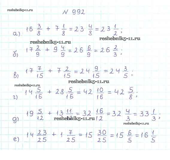 Готовая домашняя работа с ответами по Математике за 5 класс Никольский, Потапов, Решетников, Шевкин Учебник МГУ - школе Просвещение 2016 ФГОС - Упражнения 992