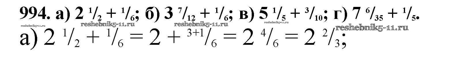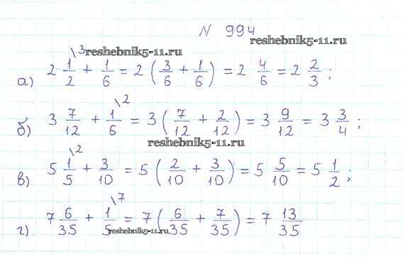 Готовая домашняя работа с ответами по Математике за 5 класс Никольский, Потапов, Решетников, Шевкин Учебник МГУ - школе Просвещение 2016 ФГОС - Упражнения 994