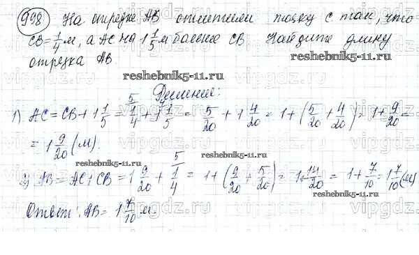 Готовая домашняя работа с ответами по Математике за 5 класс Никольский, Потапов, Решетников, Шевкин Учебник МГУ - школе Просвещение 2016 ФГОС - Упражнения 998