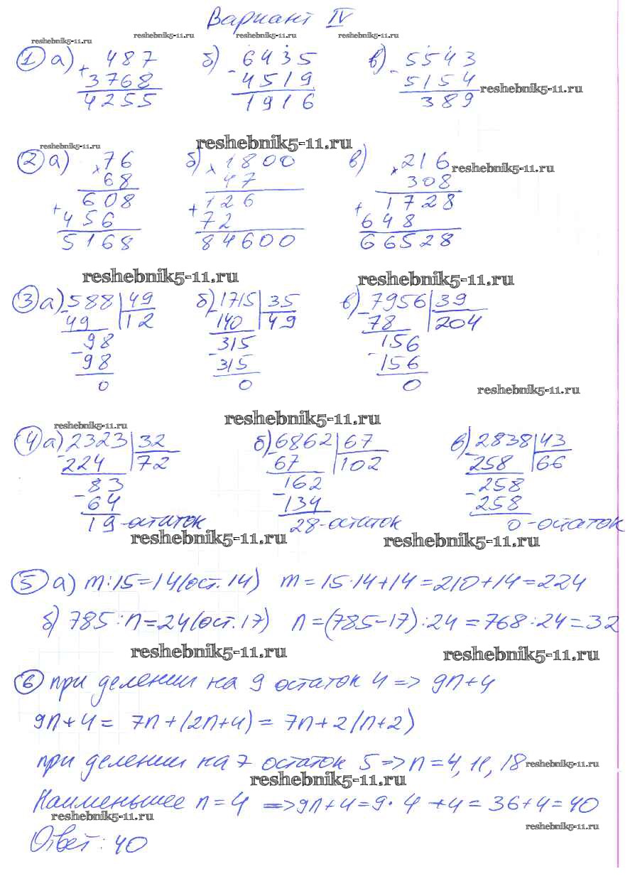 Готовая домашняя работа с ответами по Математике за 5 класс Потапов, Шевкин Дидактические материалы МГУ - школе Просвещение 2017 ФГОС - СР-5. Варианты 4