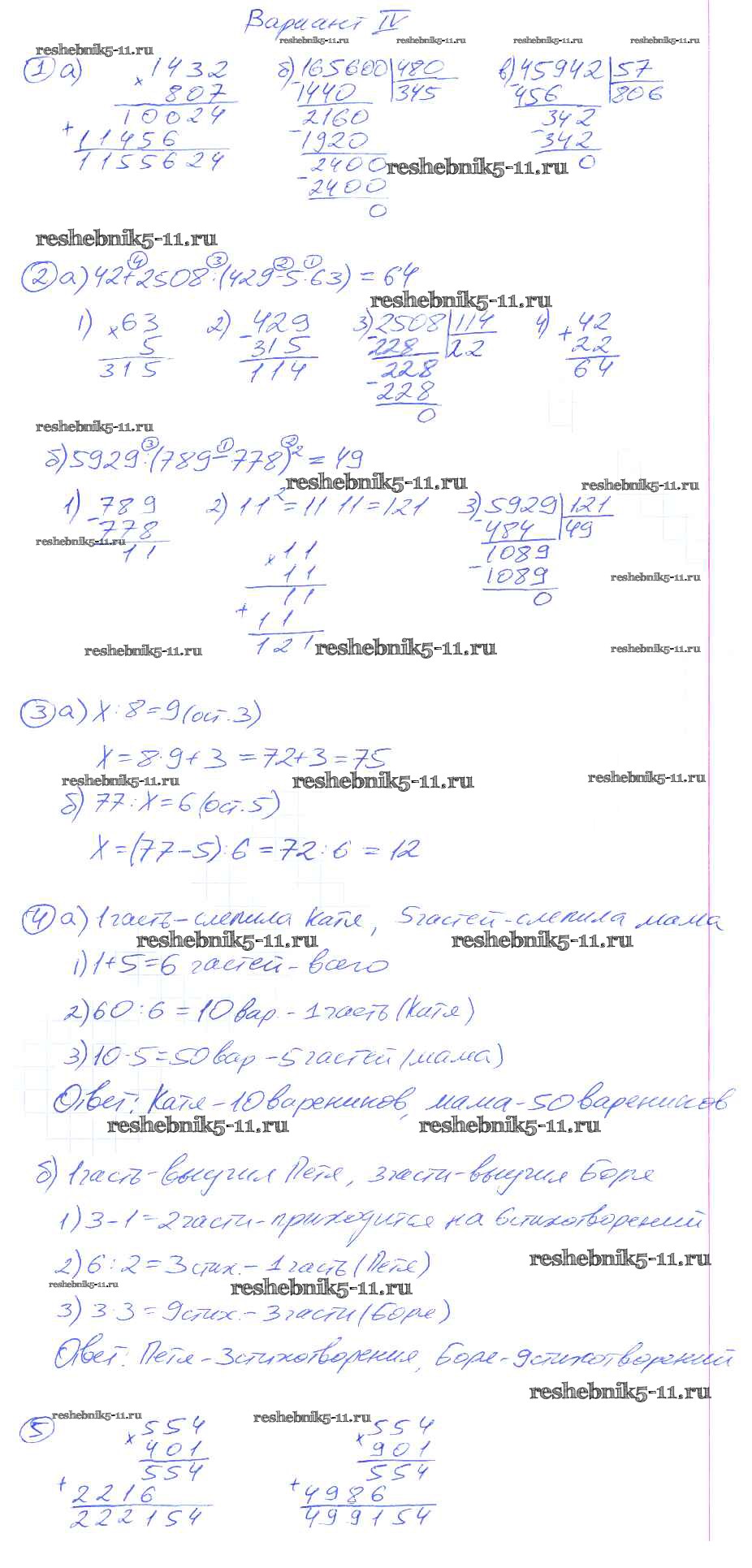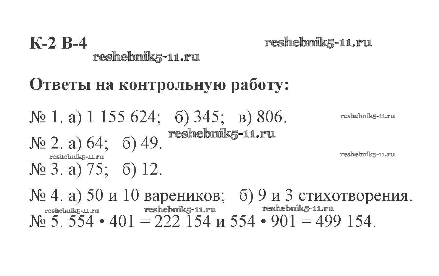 Готовая домашняя работа с ответами по Математике за 5 класс Потапов, Шевкин Дидактические материалы МГУ - школе Просвещение 2017 ФГОС - КР-2. Варианты 4