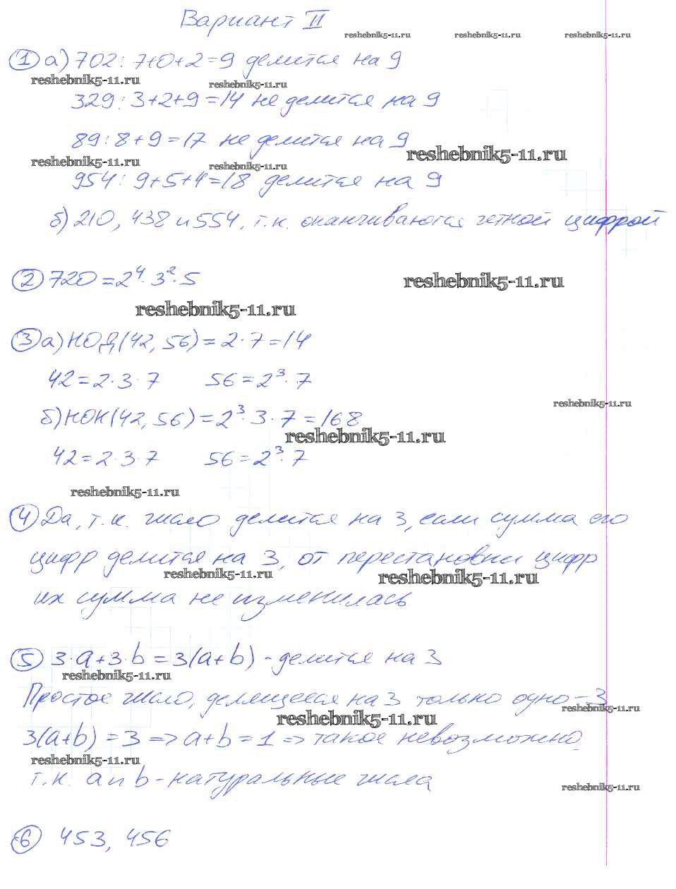 Готовая домашняя работа с ответами по Математике за 5 класс Потапов, Шевкин Дидактические материалы МГУ - школе Просвещение 2017 ФГОС - КР-5. Варианты 2