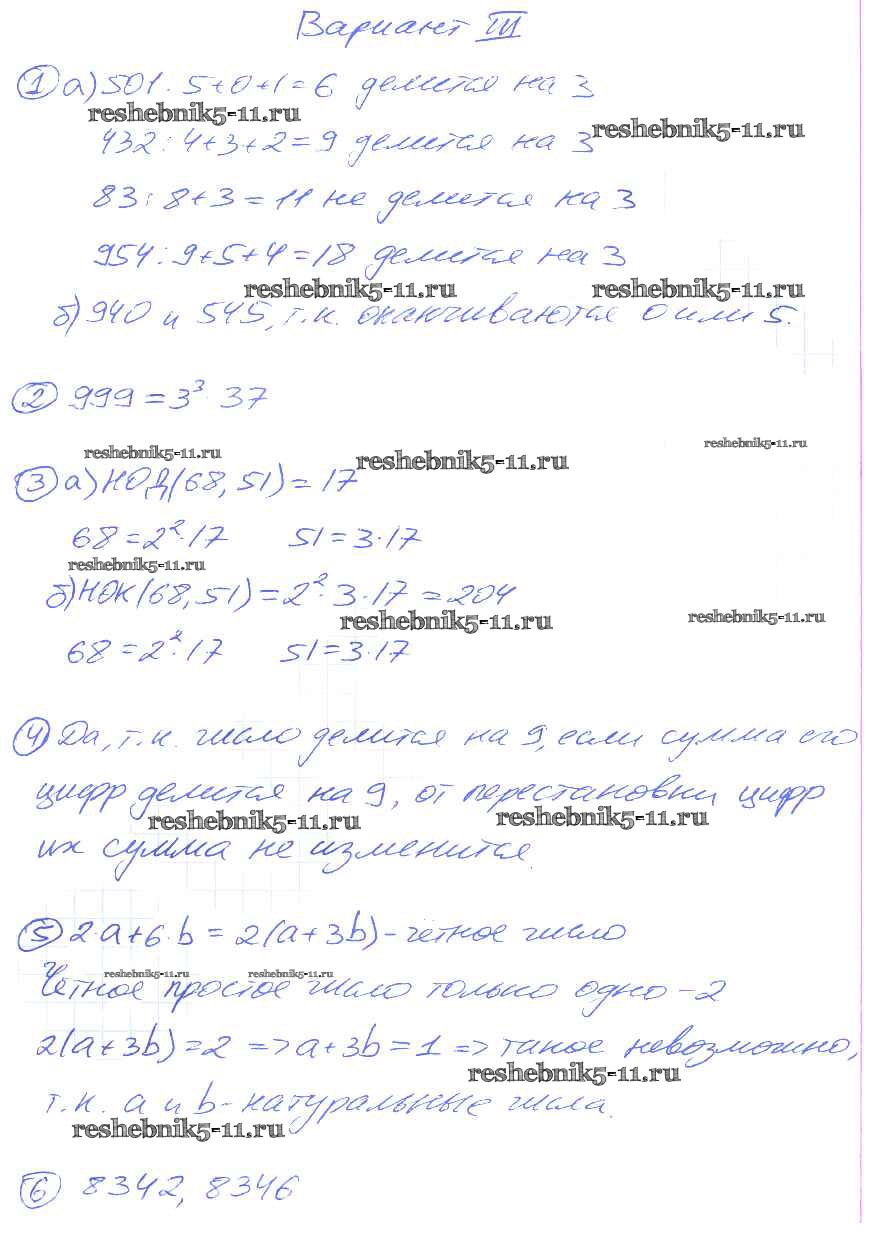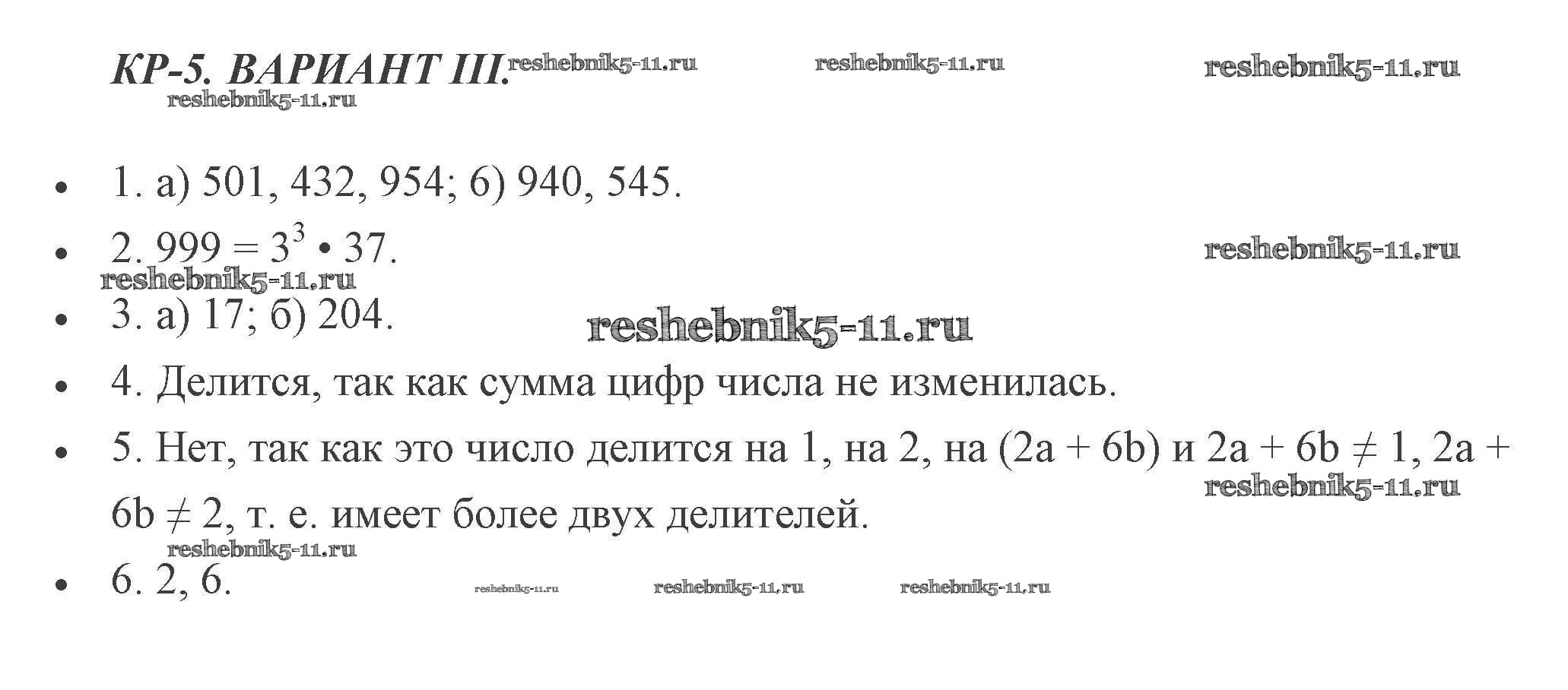 Готовая домашняя работа с ответами по Математике за 5 класс Потапов, Шевкин Дидактические материалы МГУ - школе Просвещение 2017 ФГОС - КР-5. Варианты 3