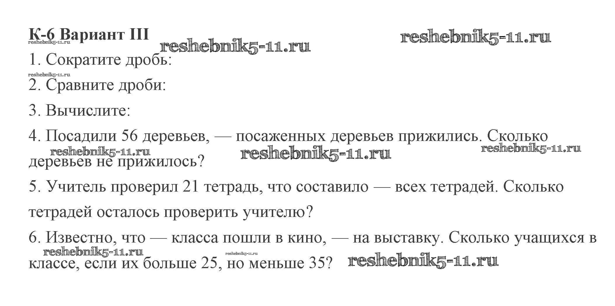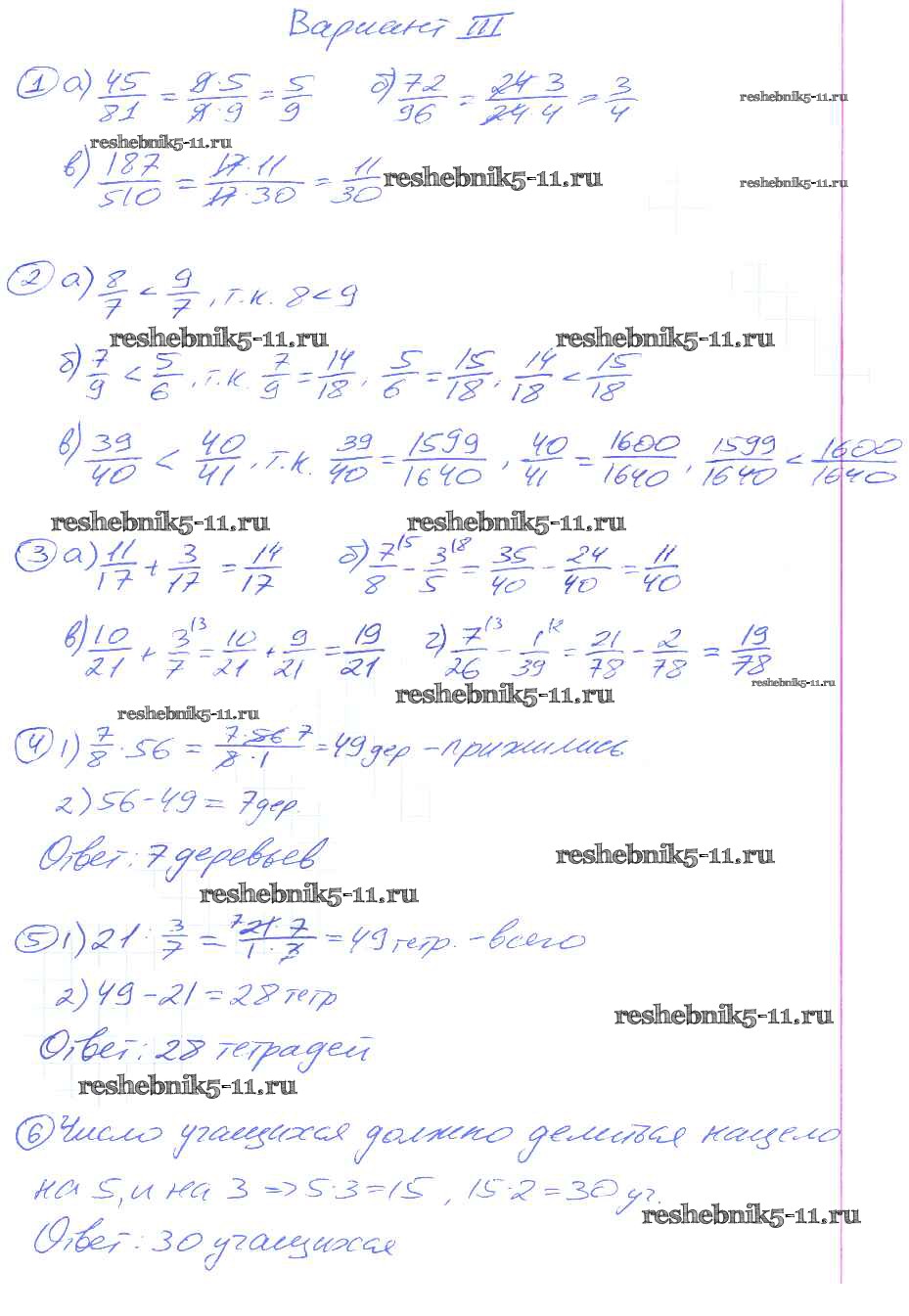 Готовая домашняя работа с ответами по Математике за 5 класс Потапов, Шевкин Дидактические материалы МГУ - школе Просвещение 2017 ФГОС - КР-6. Варианты 3