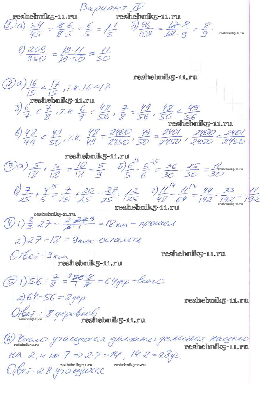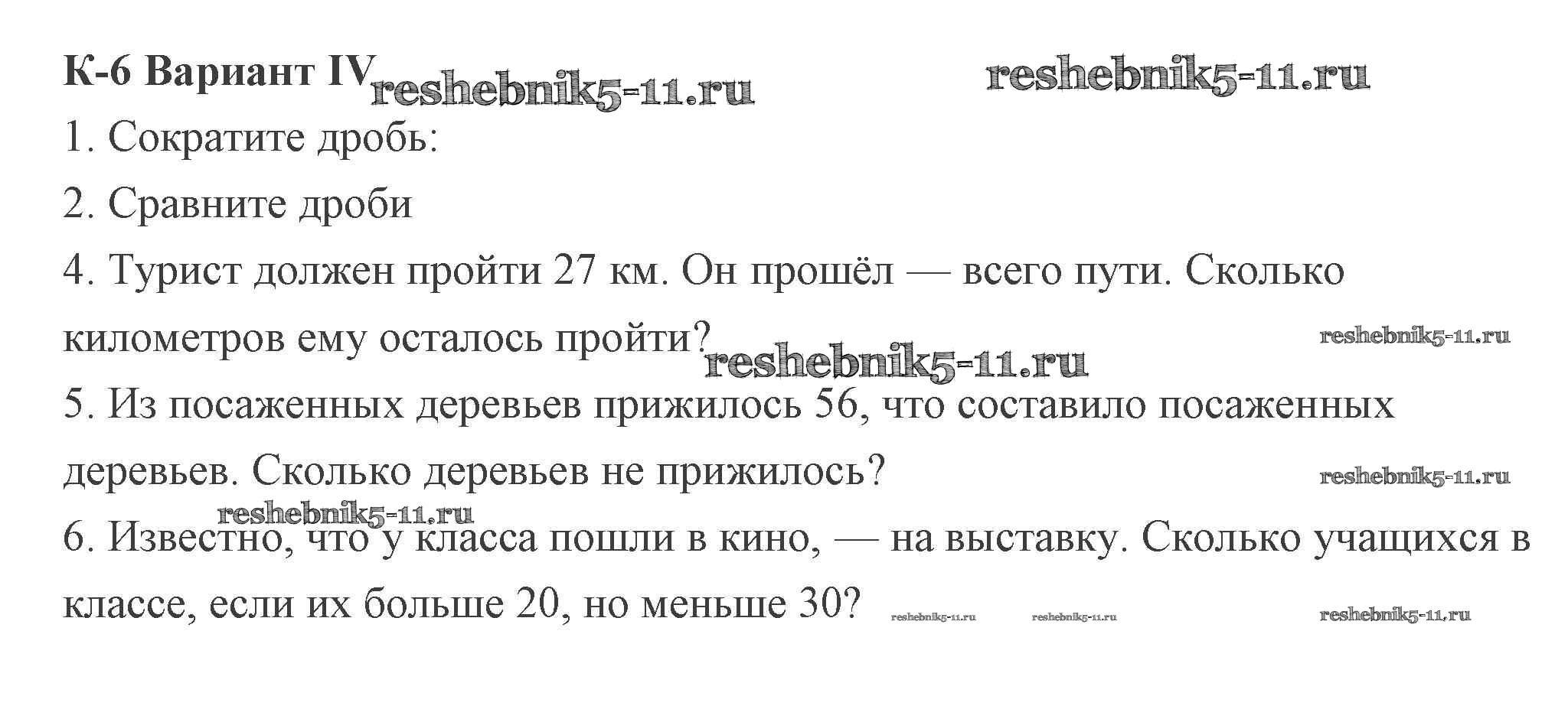 Готовая домашняя работа с ответами по Математике за 5 класс Потапов, Шевкин Дидактические материалы МГУ - школе Просвещение 2017 ФГОС - КР-6. Варианты 4