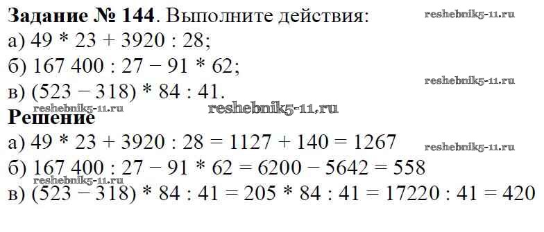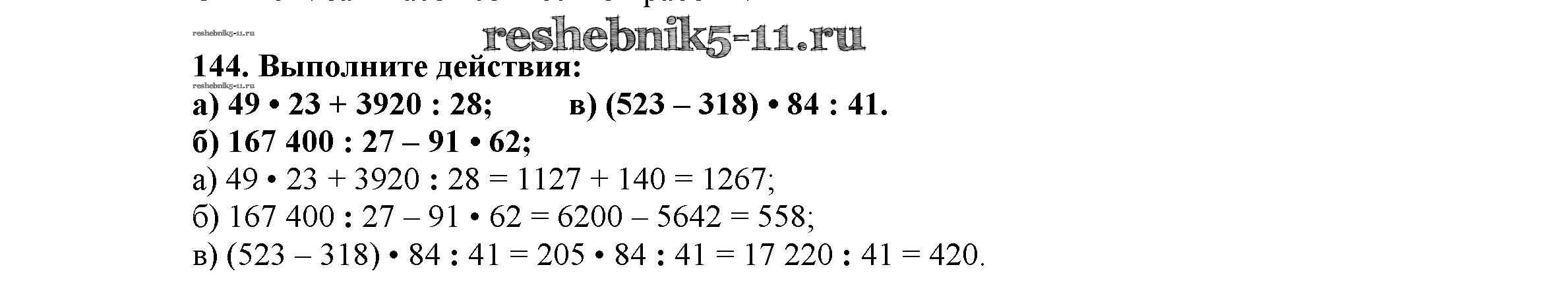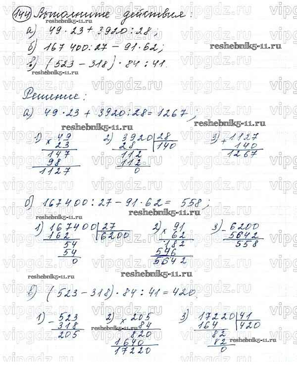 Готовая домашняя работа с ответами по Математике за 5 класс Виленкин, Жохов, Чесноков, Шварцбурд Учебник Мнемозина 2013 ФГОС - Глава 1. Натуральные числа (упражнения с 1 по 849) 144