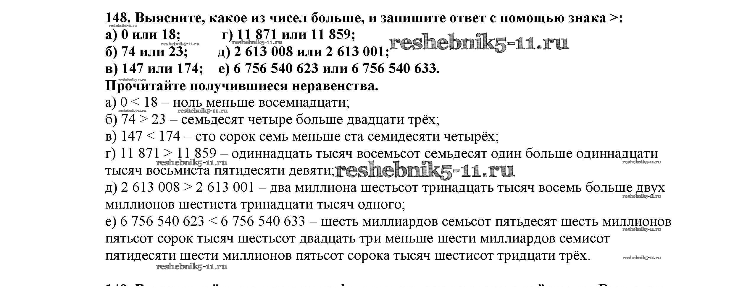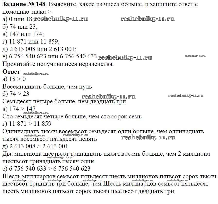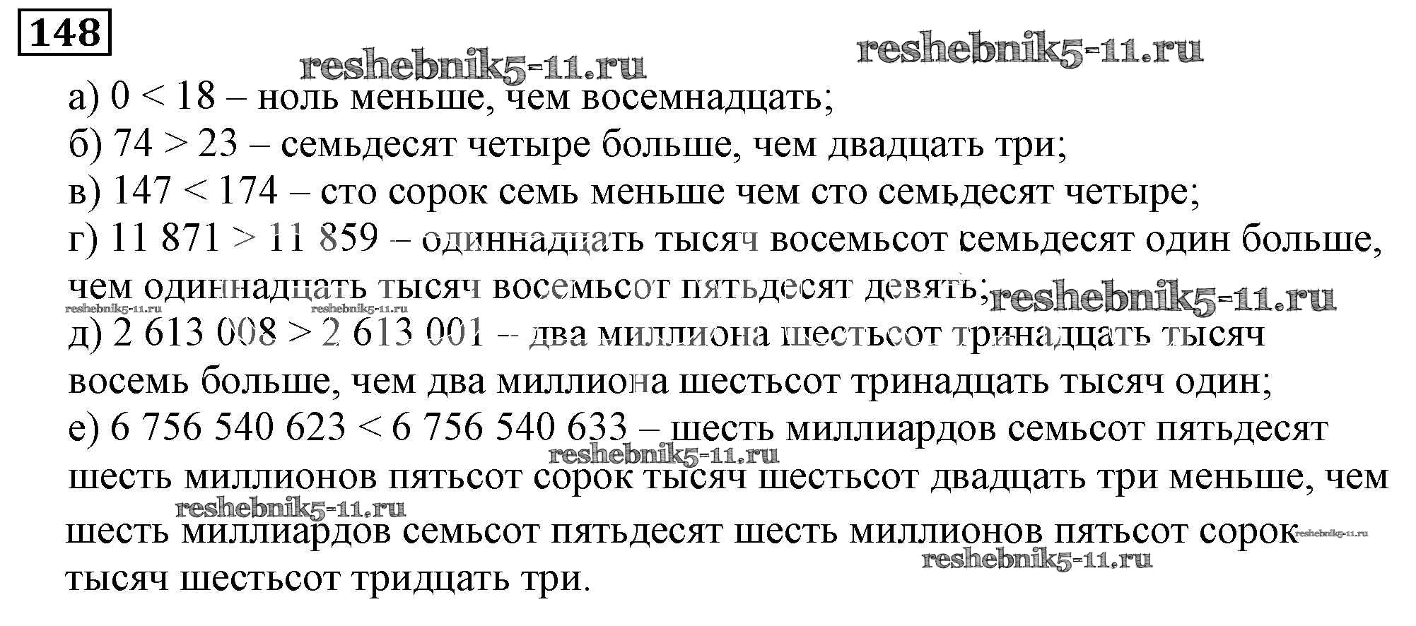 Готовая домашняя работа с ответами по Математике за 5 класс Виленкин, Жохов, Чесноков, Шварцбурд Учебник Мнемозина 2013 ФГОС - Глава 1. Натуральные числа (упражнения с 1 по 849) 148