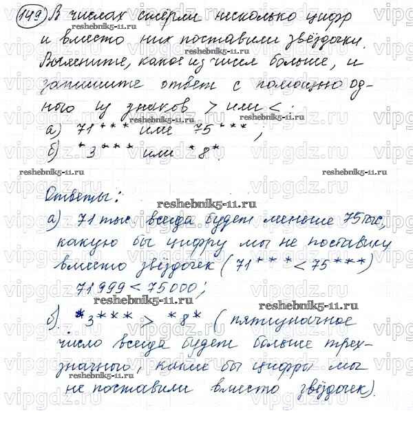 Готовая домашняя работа с ответами по Математике за 5 класс Виленкин, Жохов, Чесноков, Шварцбурд Учебник Мнемозина 2013 ФГОС - Глава 1. Натуральные числа (упражнения с 1 по 849) 149