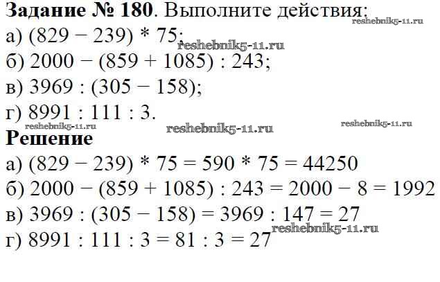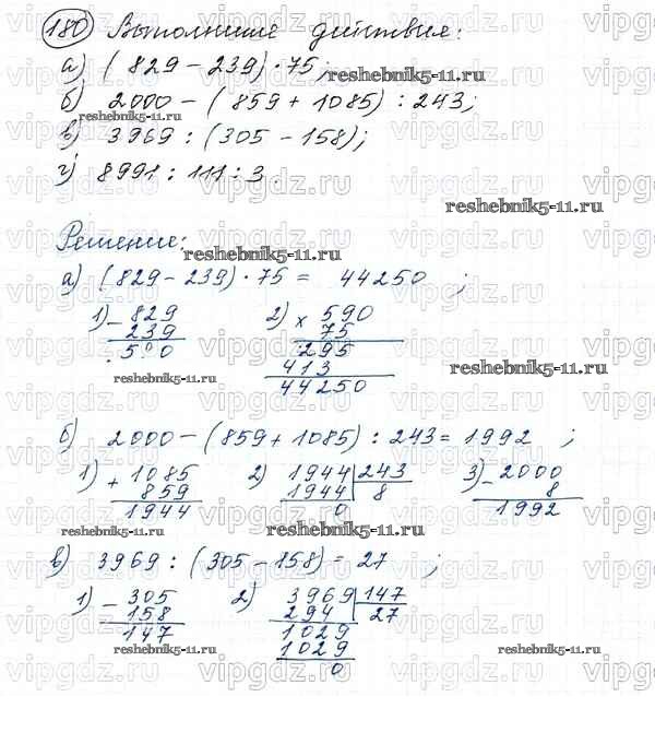 Готовая домашняя работа с ответами по Математике за 5 класс Виленкин, Жохов, Чесноков, Шварцбурд Учебник Мнемозина 2013 ФГОС - Глава 1. Натуральные числа (упражнения с 1 по 849) 180
