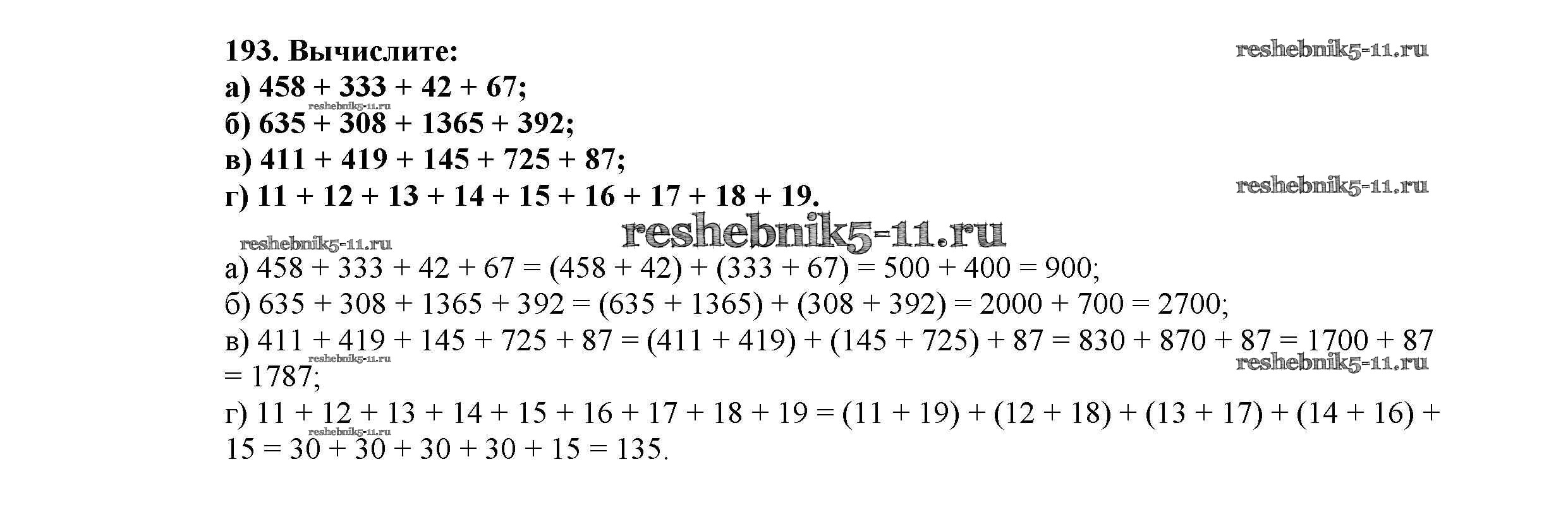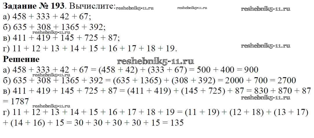 Готовая домашняя работа с ответами по Математике за 5 класс Виленкин, Жохов, Чесноков, Шварцбурд Учебник Мнемозина 2013 ФГОС - Глава 1. Натуральные числа (упражнения с 1 по 849) 193