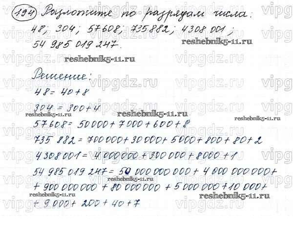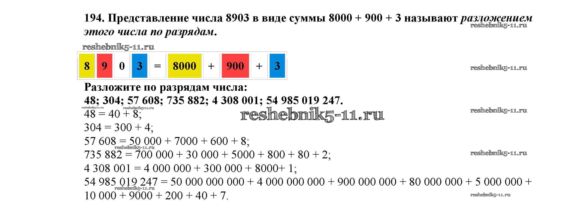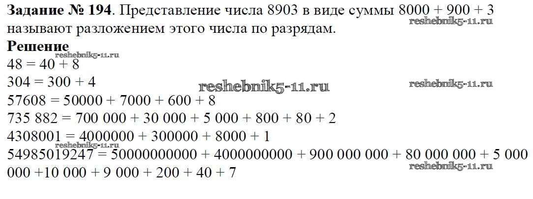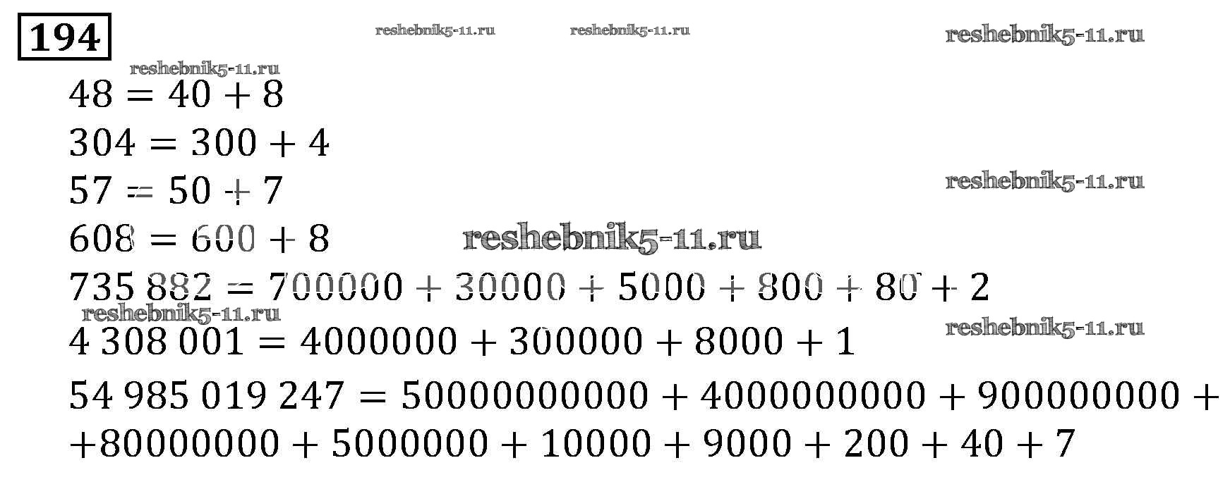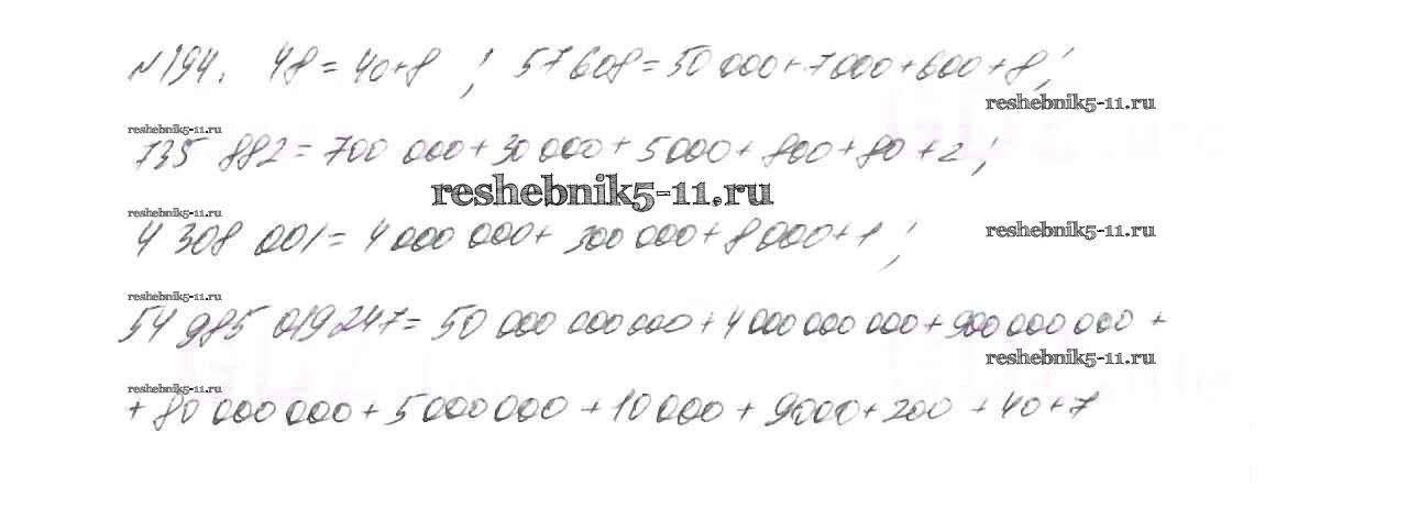 Готовая домашняя работа с ответами по Математике за 5 класс Виленкин, Жохов, Чесноков, Шварцбурд Учебник Мнемозина 2013 ФГОС - Глава 1. Натуральные числа (упражнения с 1 по 849) 194