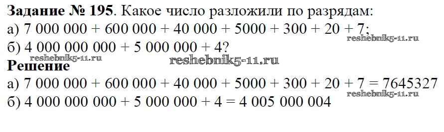 Готовая домашняя работа с ответами по Математике за 5 класс Виленкин, Жохов, Чесноков, Шварцбурд Учебник Мнемозина 2013 ФГОС - Глава 1. Натуральные числа (упражнения с 1 по 849) 195