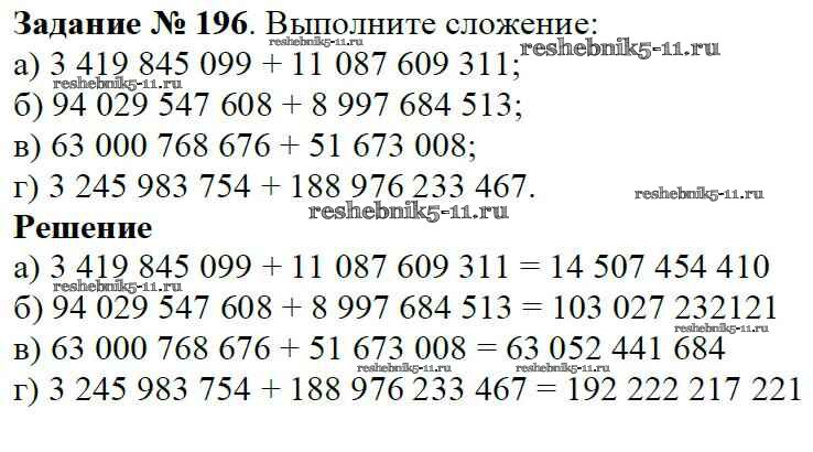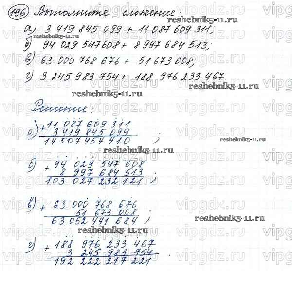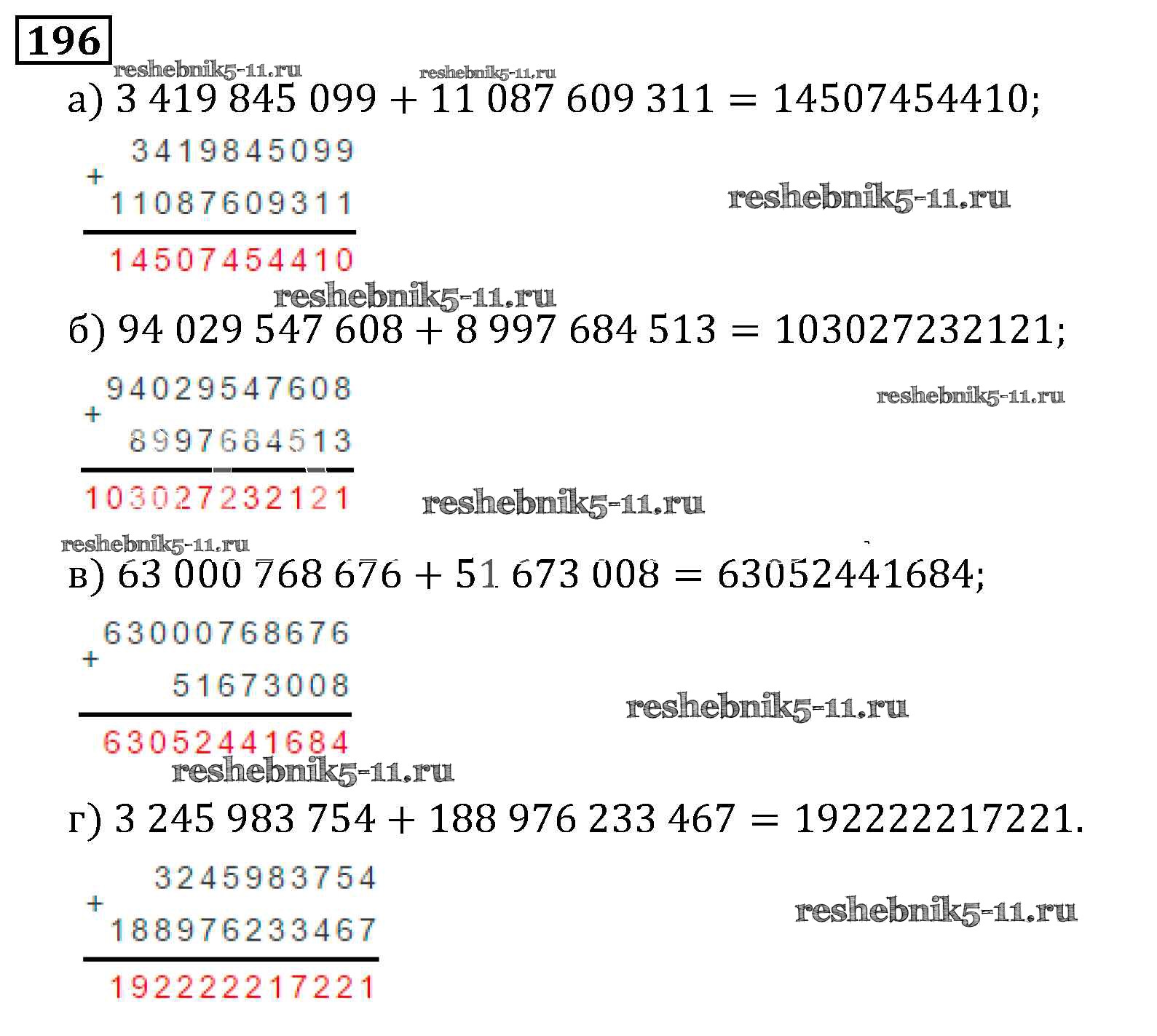 Готовая домашняя работа с ответами по Математике за 5 класс Виленкин, Жохов, Чесноков, Шварцбурд Учебник Мнемозина 2013 ФГОС - Глава 1. Натуральные числа (упражнения с 1 по 849) 196