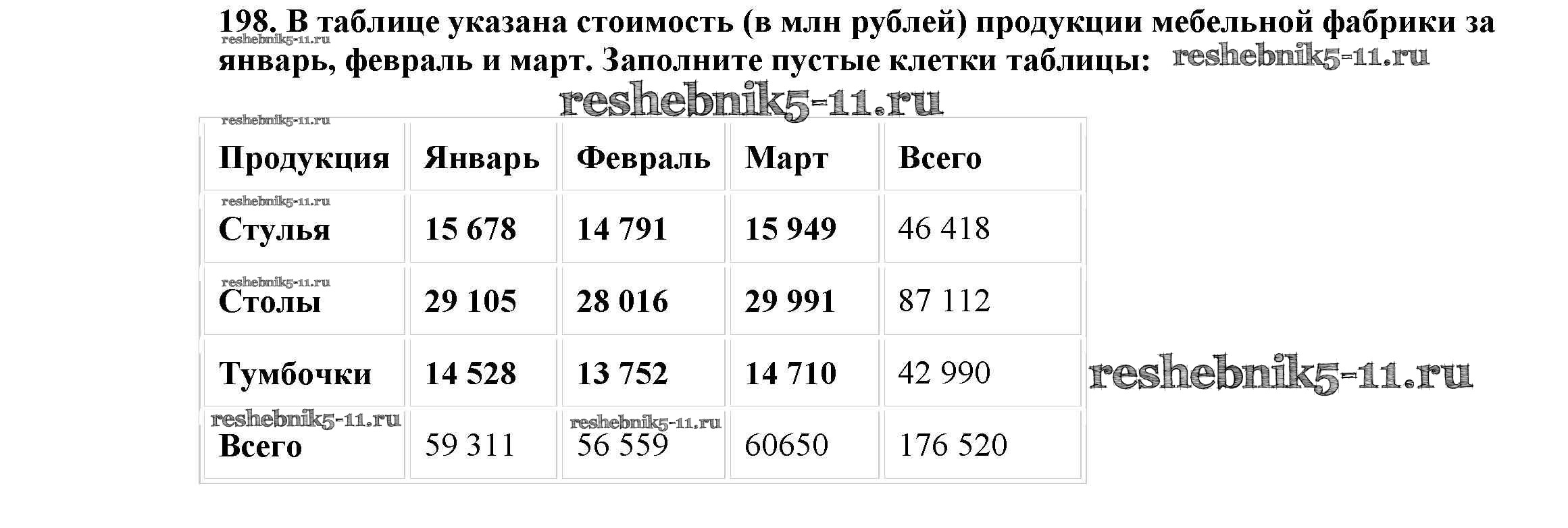 Готовая домашняя работа с ответами по Математике за 5 класс Виленкин, Жохов, Чесноков, Шварцбурд Учебник Мнемозина 2013 ФГОС - Глава 1. Натуральные числа (упражнения с 1 по 849) 198