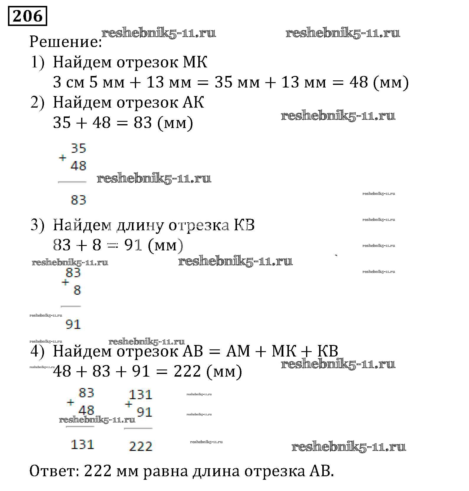 Готовая домашняя работа с ответами по Математике за 5 класс Виленкин, Жохов, Чесноков, Шварцбурд Учебник Мнемозина 2013 ФГОС - Глава 1. Натуральные числа (упражнения с 1 по 849) 206