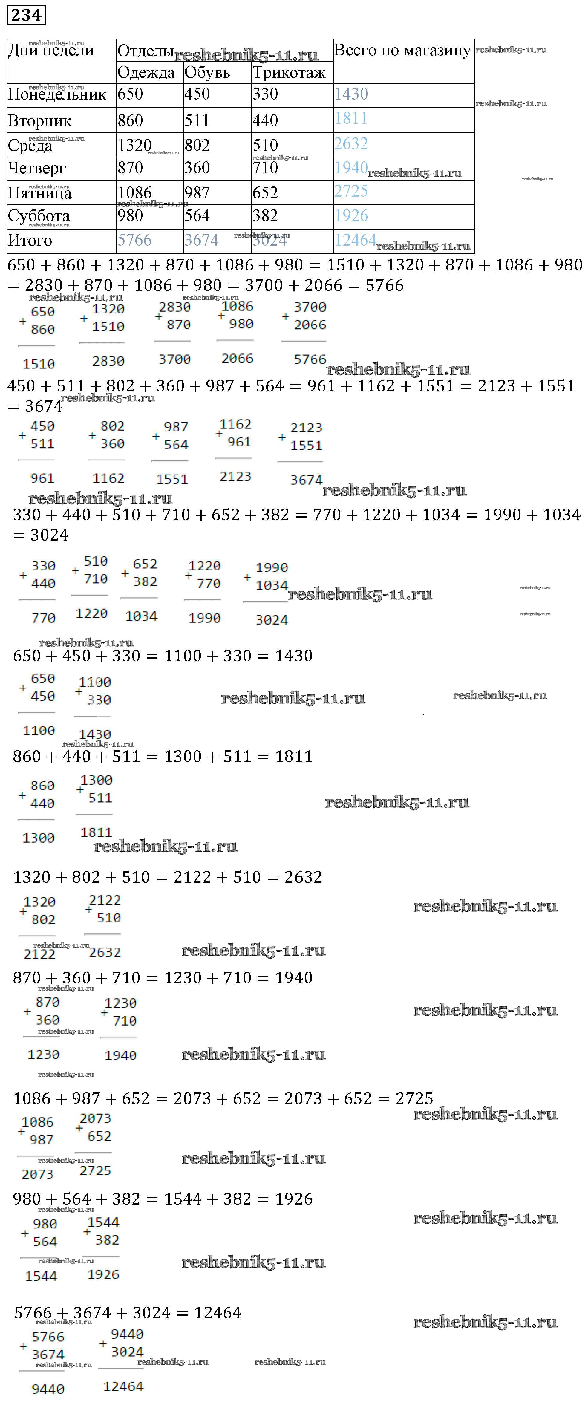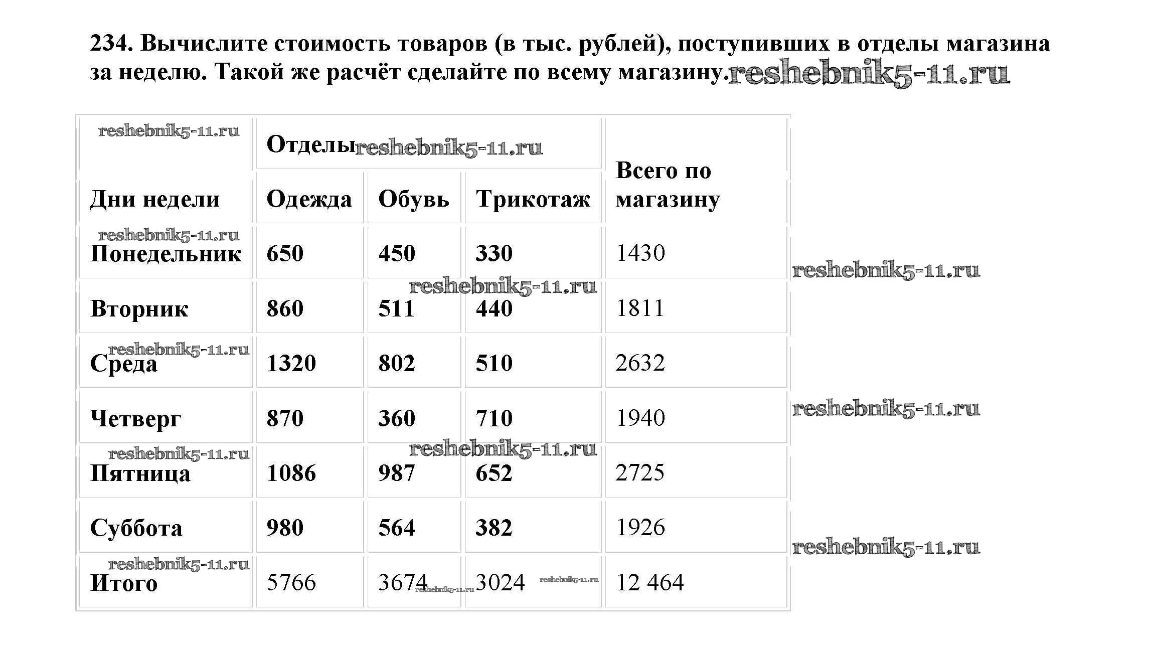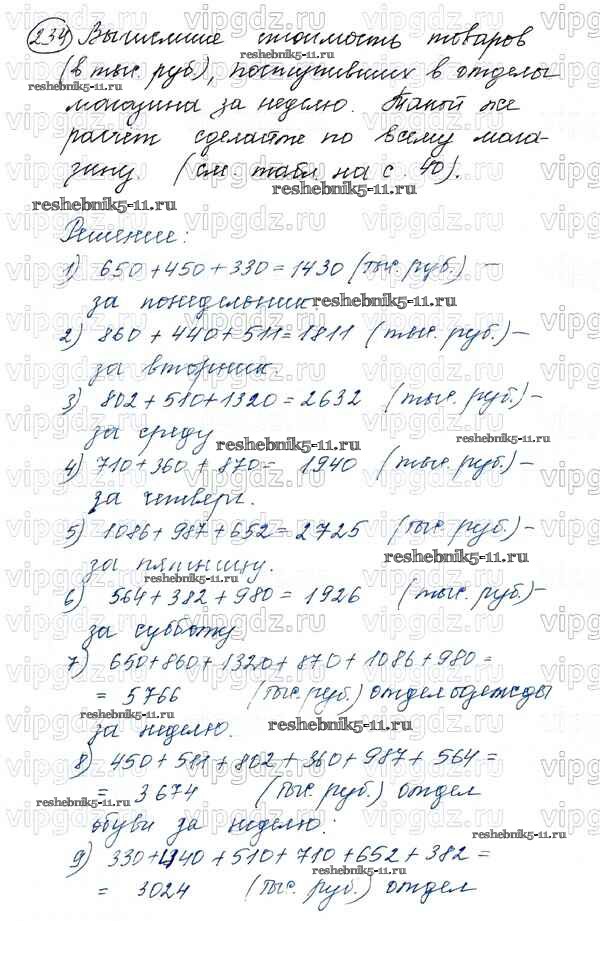 Готовая домашняя работа с ответами по Математике за 5 класс Виленкин, Жохов, Чесноков, Шварцбурд Учебник Мнемозина 2013 ФГОС - Глава 1. Натуральные числа (упражнения с 1 по 849) 234
