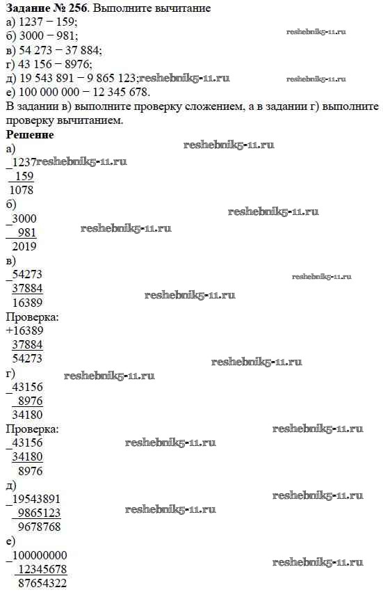 Готовая домашняя работа с ответами по Математике за 5 класс Виленкин, Жохов, Чесноков, Шварцбурд Учебник Мнемозина 2013 ФГОС - Глава 1. Натуральные числа (упражнения с 1 по 849) 256