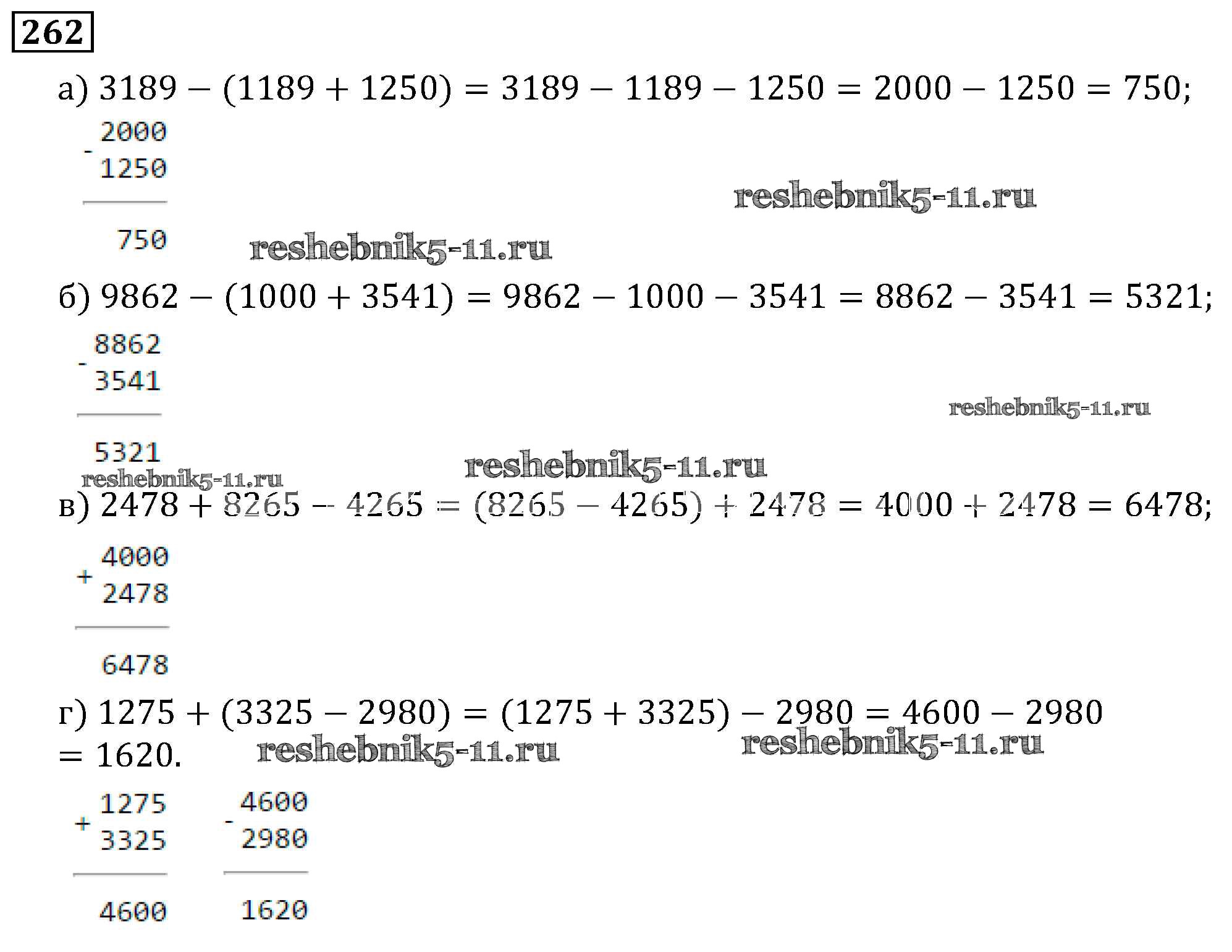 Готовая домашняя работа с ответами по Математике за 5 класс Виленкин, Жохов, Чесноков, Шварцбурд Учебник Мнемозина 2013 ФГОС - Глава 1. Натуральные числа (упражнения с 1 по 849) 262