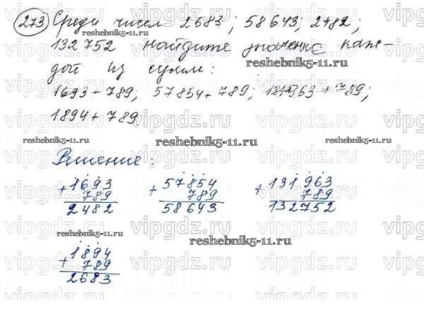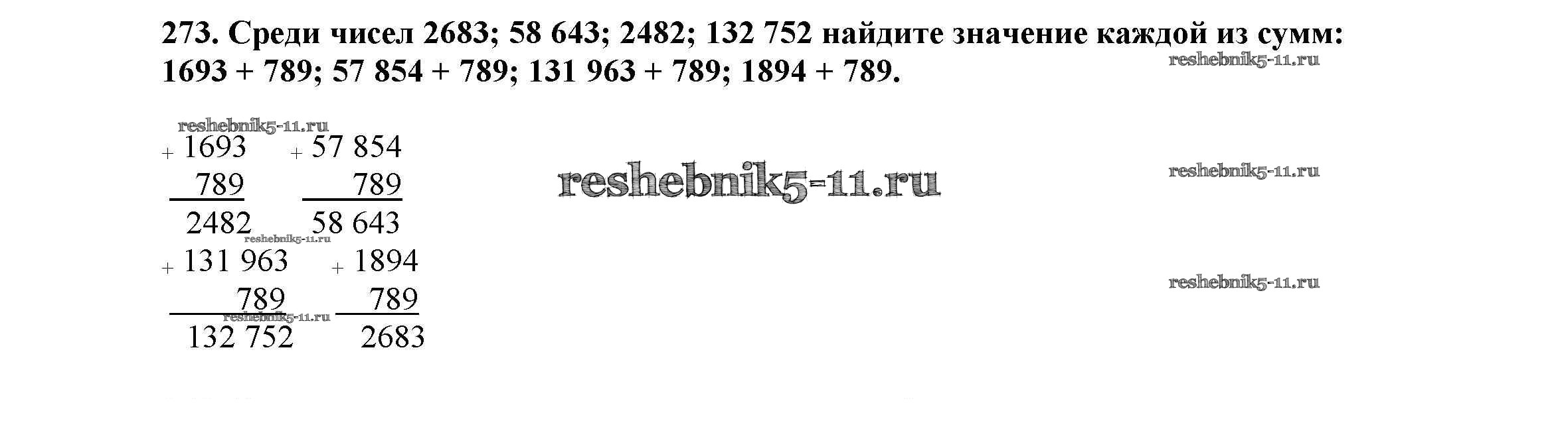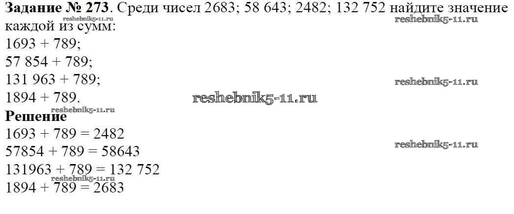 Готовая домашняя работа с ответами по Математике за 5 класс Виленкин, Жохов, Чесноков, Шварцбурд Учебник Мнемозина 2013 ФГОС - Глава 1. Натуральные числа (упражнения с 1 по 849) 273