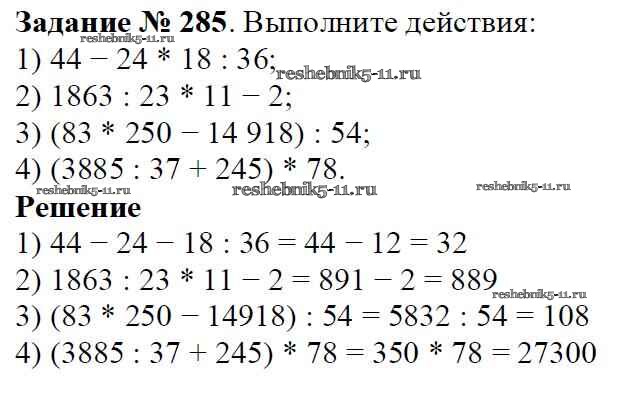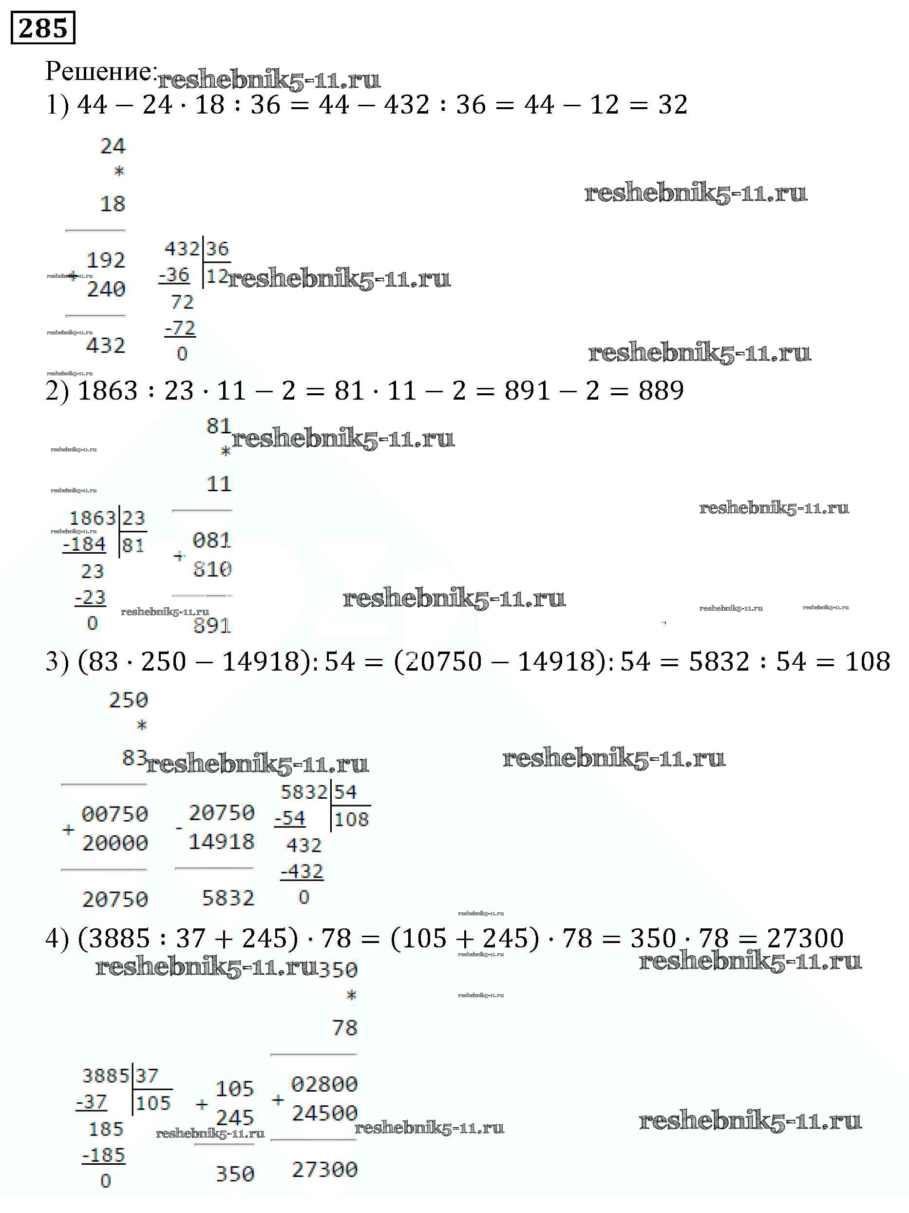 Готовая домашняя работа с ответами по Математике за 5 класс Виленкин, Жохов, Чесноков, Шварцбурд Учебник Мнемозина 2013 ФГОС - Глава 1. Натуральные числа (упражнения с 1 по 849) 285