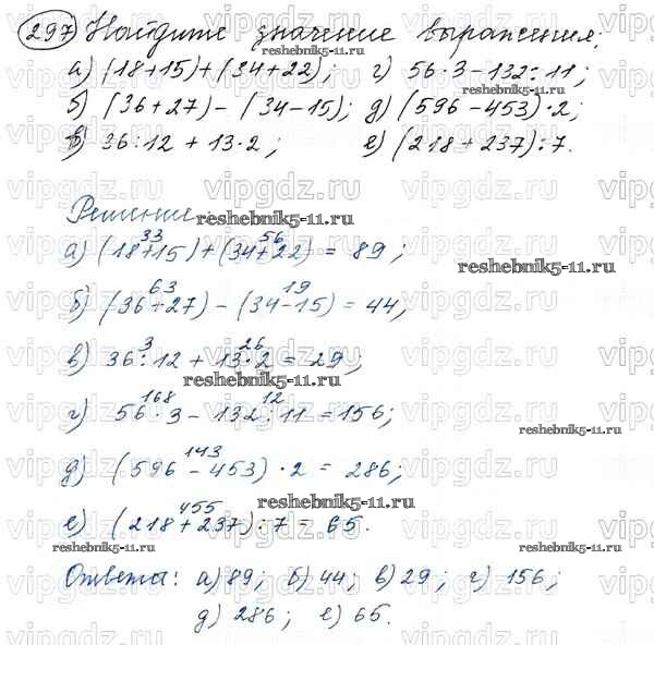 Готовая домашняя работа с ответами по Математике за 5 класс Виленкин, Жохов, Чесноков, Шварцбурд Учебник Мнемозина 2013 ФГОС - Глава 1. Натуральные числа (упражнения с 1 по 849) 297