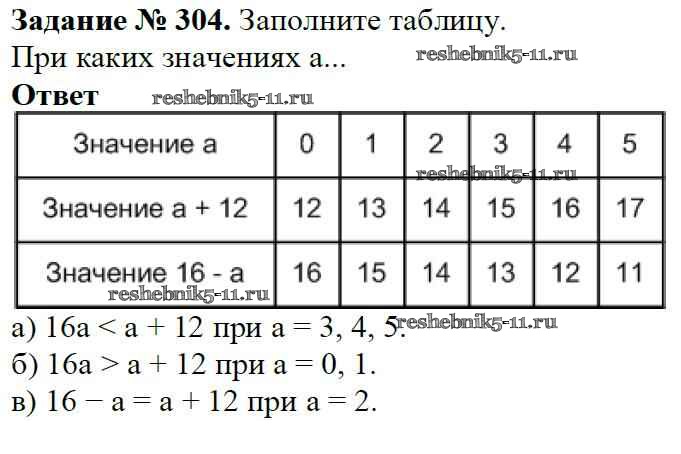 Готовая домашняя работа с ответами по Математике за 5 класс Виленкин, Жохов, Чесноков, Шварцбурд Учебник Мнемозина 2013 ФГОС - Глава 1. Натуральные числа (упражнения с 1 по 849) 304