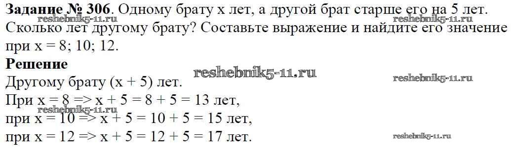 Готовая домашняя работа с ответами по Математике за 5 класс Виленкин, Жохов, Чесноков, Шварцбурд Учебник Мнемозина 2013 ФГОС - Глава 1. Натуральные числа (упражнения с 1 по 849) 306