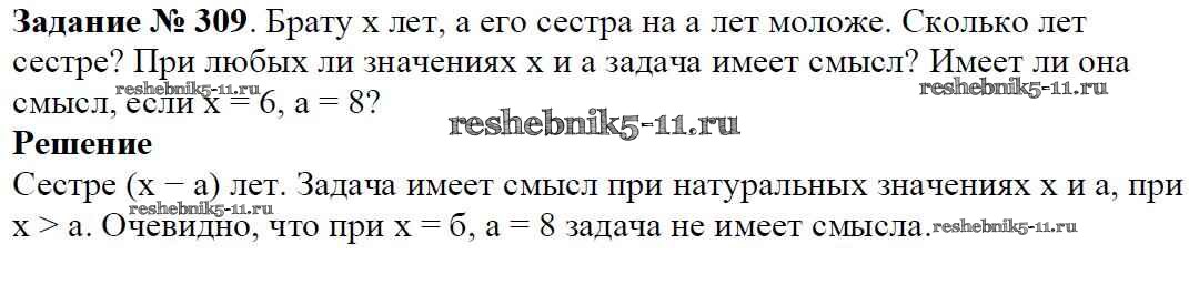 Готовая домашняя работа с ответами по Математике за 5 класс Виленкин, Жохов, Чесноков, Шварцбурд Учебник Мнемозина 2013 ФГОС - Глава 1. Натуральные числа (упражнения с 1 по 849) 309