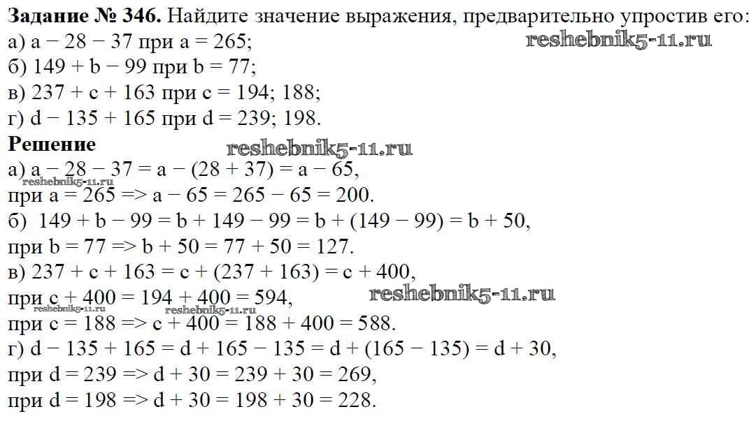 Готовая домашняя работа с ответами по Математике за 5 класс Виленкин, Жохов, Чесноков, Шварцбурд Учебник Мнемозина 2013 ФГОС - Глава 1. Натуральные числа (упражнения с 1 по 849) 346