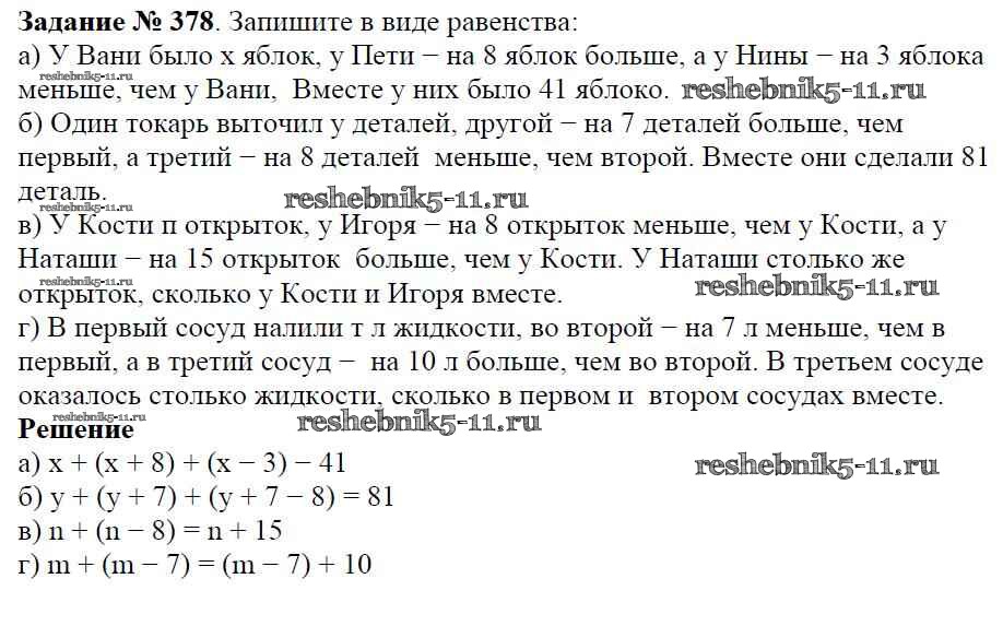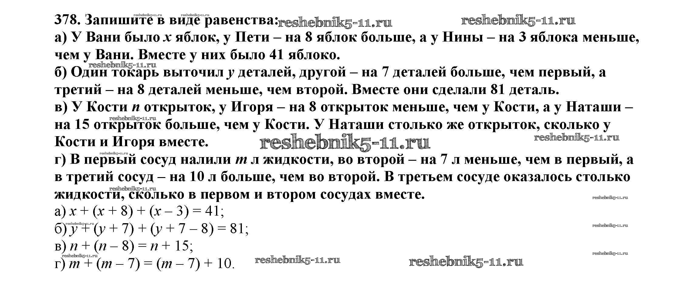 Готовая домашняя работа с ответами по Математике за 5 класс Виленкин, Жохов, Чесноков, Шварцбурд Учебник Мнемозина 2013 ФГОС - Глава 1. Натуральные числа (упражнения с 1 по 849) 378