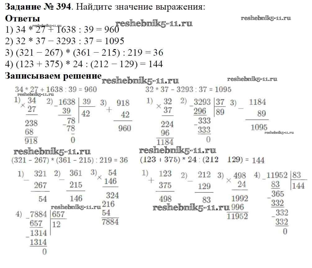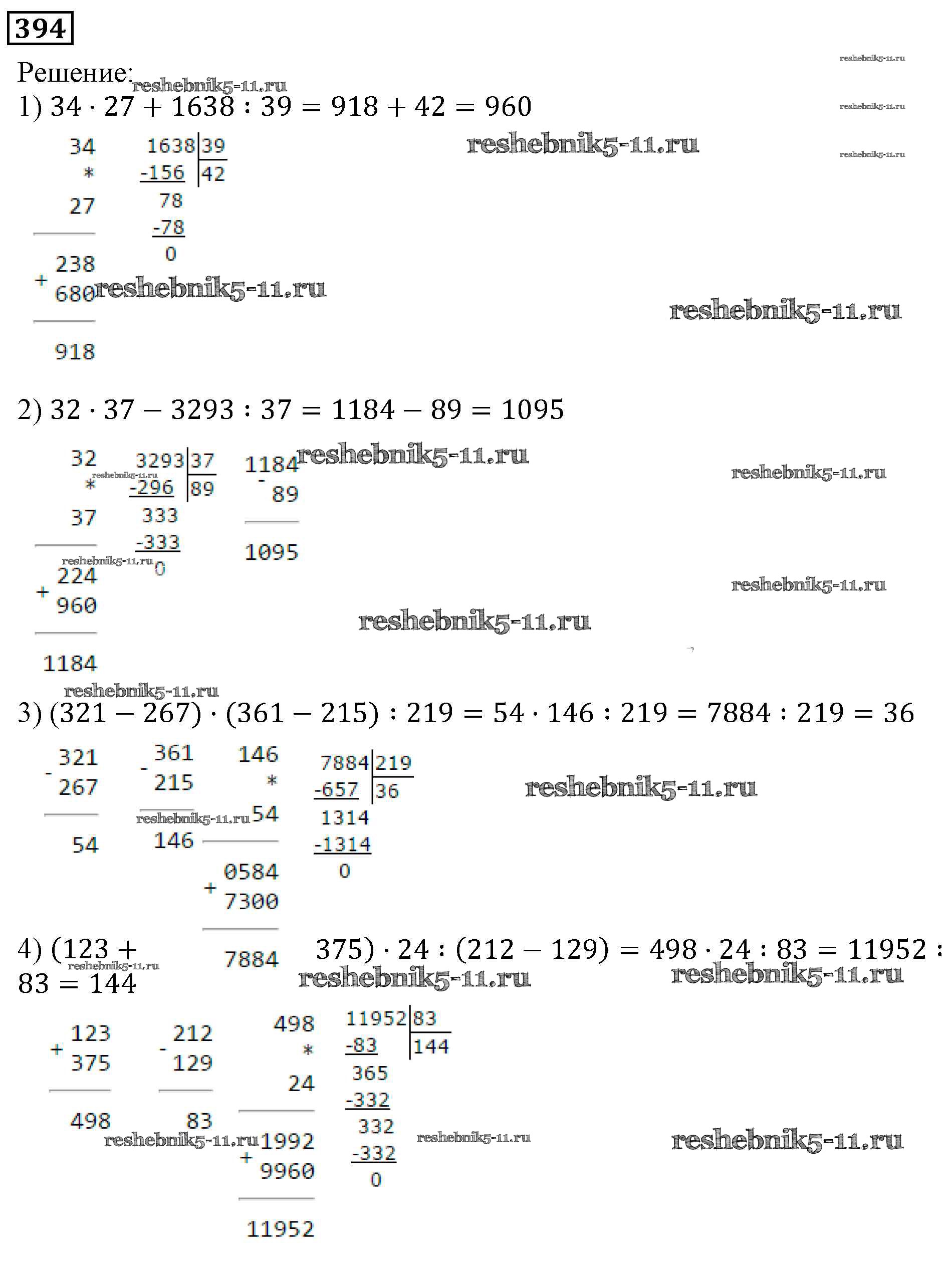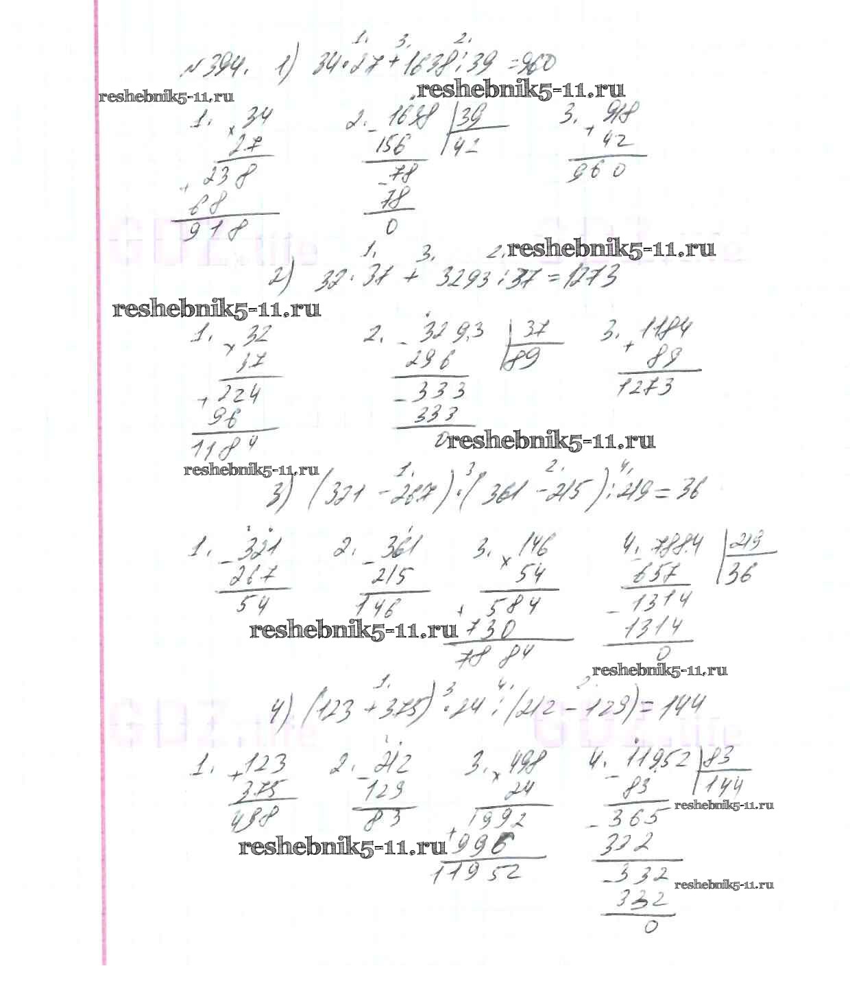 Готовая домашняя работа с ответами по Математике за 5 класс Виленкин, Жохов, Чесноков, Шварцбурд Учебник Мнемозина 2013 ФГОС - Глава 1. Натуральные числа (упражнения с 1 по 849) 394