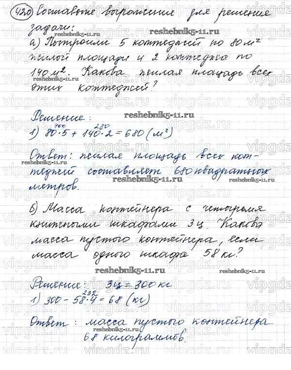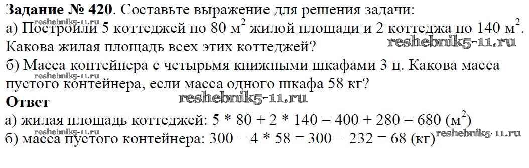 Готовая домашняя работа с ответами по Математике за 5 класс Виленкин, Жохов, Чесноков, Шварцбурд Учебник Мнемозина 2013 ФГОС - Глава 1. Натуральные числа (упражнения с 1 по 849) 420