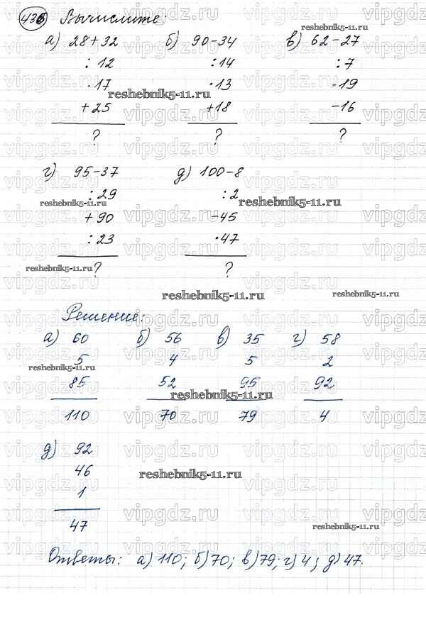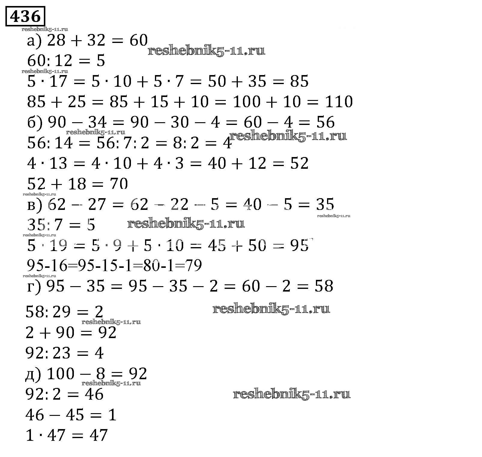 Готовая домашняя работа с ответами по Математике за 5 класс Виленкин, Жохов, Чесноков, Шварцбурд Учебник Мнемозина 2013 ФГОС - Глава 1. Натуральные числа (упражнения с 1 по 849) 436