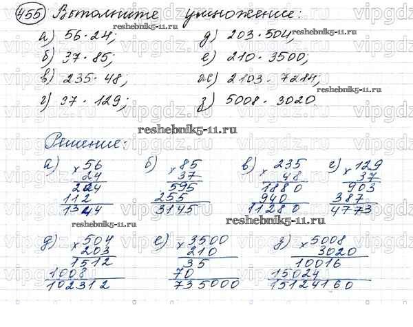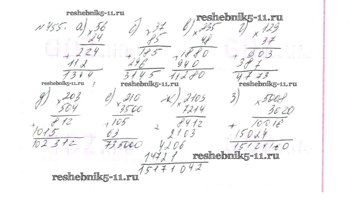 Готовая домашняя работа с ответами по Математике за 5 класс Виленкин, Жохов, Чесноков, Шварцбурд Учебник Мнемозина 2013 ФГОС - Глава 1. Натуральные числа (упражнения с 1 по 849) 455