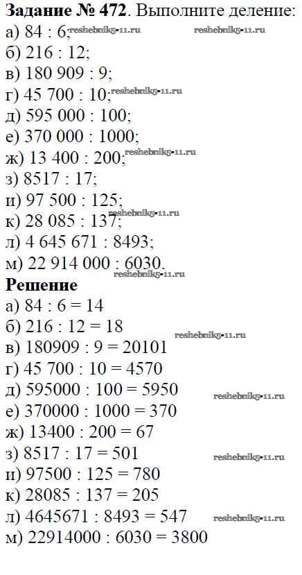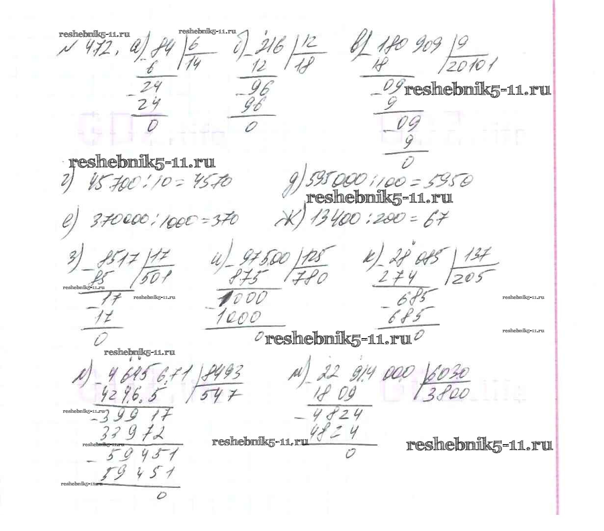 Готовая домашняя работа с ответами по Математике за 5 класс Виленкин, Жохов, Чесноков, Шварцбурд Учебник Мнемозина 2013 ФГОС - Глава 1. Натуральные числа (упражнения с 1 по 849) 472
