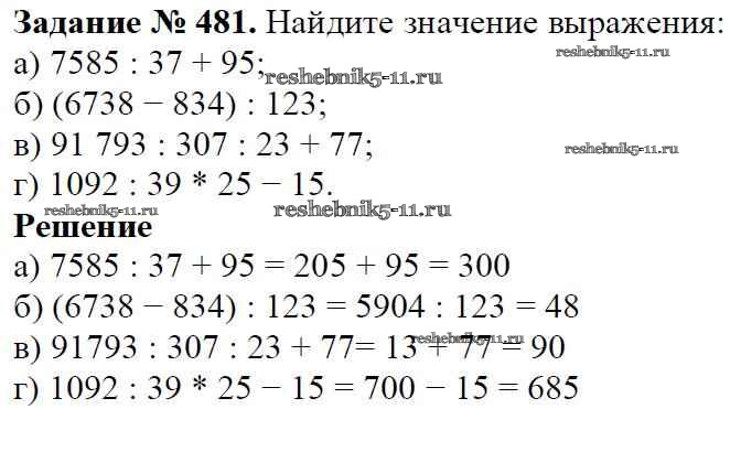 Готовая домашняя работа с ответами по Математике за 5 класс Виленкин, Жохов, Чесноков, Шварцбурд Учебник Мнемозина 2013 ФГОС - Глава 1. Натуральные числа (упражнения с 1 по 849) 481