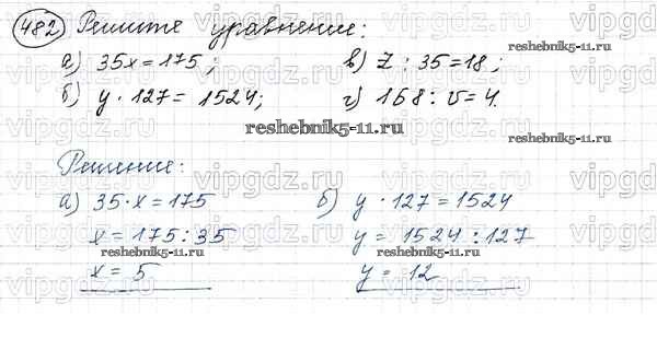 Готовая домашняя работа с ответами по Математике за 5 класс Виленкин, Жохов, Чесноков, Шварцбурд Учебник Мнемозина 2013 ФГОС - Глава 1. Натуральные числа (упражнения с 1 по 849) 482