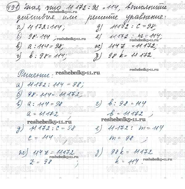 Готовая домашняя работа с ответами по Математике за 5 класс Виленкин, Жохов, Чесноков, Шварцбурд Учебник Мнемозина 2013 ФГОС - Глава 1. Натуральные числа (упражнения с 1 по 849) 491