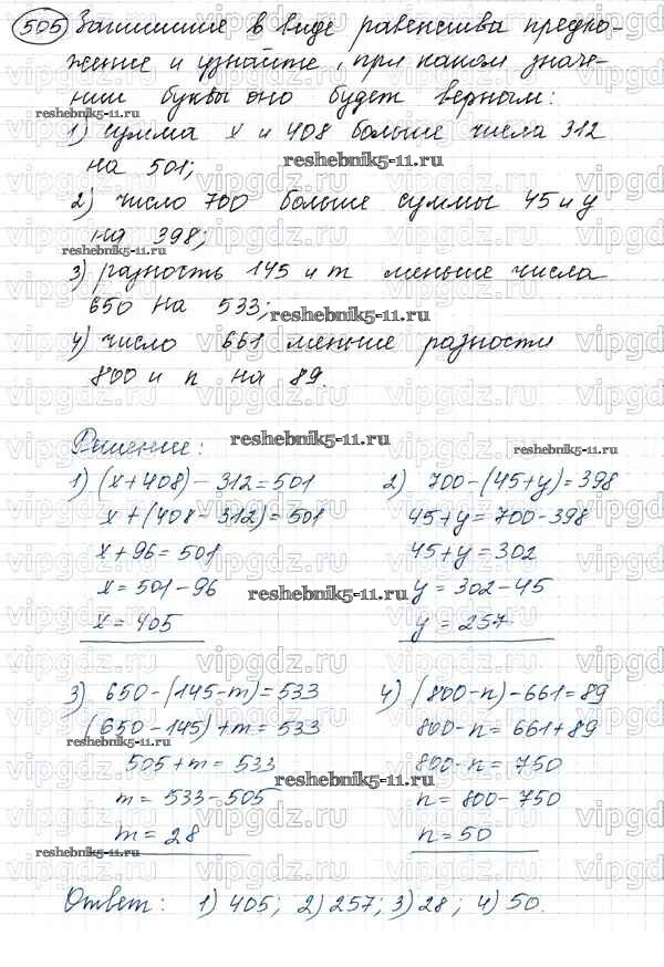 Готовая домашняя работа с ответами по Математике за 5 класс Виленкин, Жохов, Чесноков, Шварцбурд Учебник Мнемозина 2013 ФГОС - Глава 1. Натуральные числа (упражнения с 1 по 849) 505