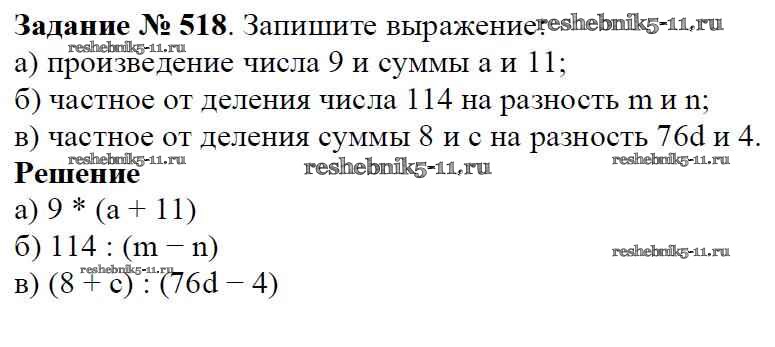 Готовая домашняя работа с ответами по Математике за 5 класс Виленкин, Жохов, Чесноков, Шварцбурд Учебник Мнемозина 2013 ФГОС - Глава 1. Натуральные числа (упражнения с 1 по 849) 518