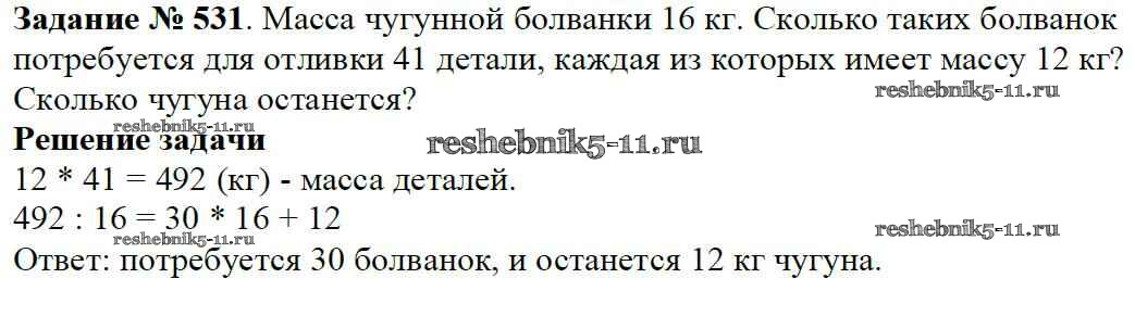 Готовая домашняя работа с ответами по Математике за 5 класс Виленкин, Жохов, Чесноков, Шварцбурд Учебник Мнемозина 2013 ФГОС - Глава 1. Натуральные числа (упражнения с 1 по 849) 531