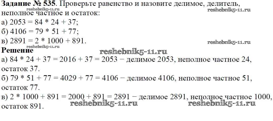 Готовая домашняя работа с ответами по Математике за 5 класс Виленкин, Жохов, Чесноков, Шварцбурд Учебник Мнемозина 2013 ФГОС - Глава 1. Натуральные числа (упражнения с 1 по 849) 535