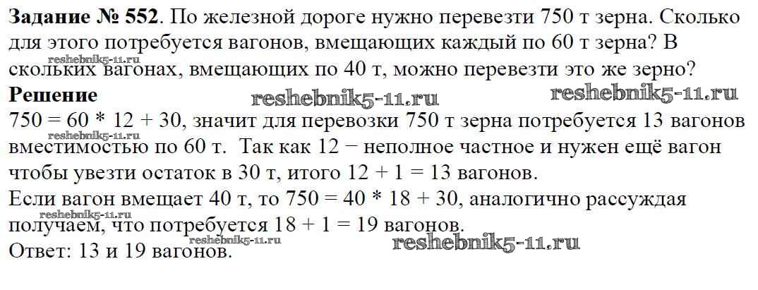 Готовая домашняя работа с ответами по Математике за 5 класс Виленкин, Жохов, Чесноков, Шварцбурд Учебник Мнемозина 2013 ФГОС - Глава 1. Натуральные числа (упражнения с 1 по 849) 552